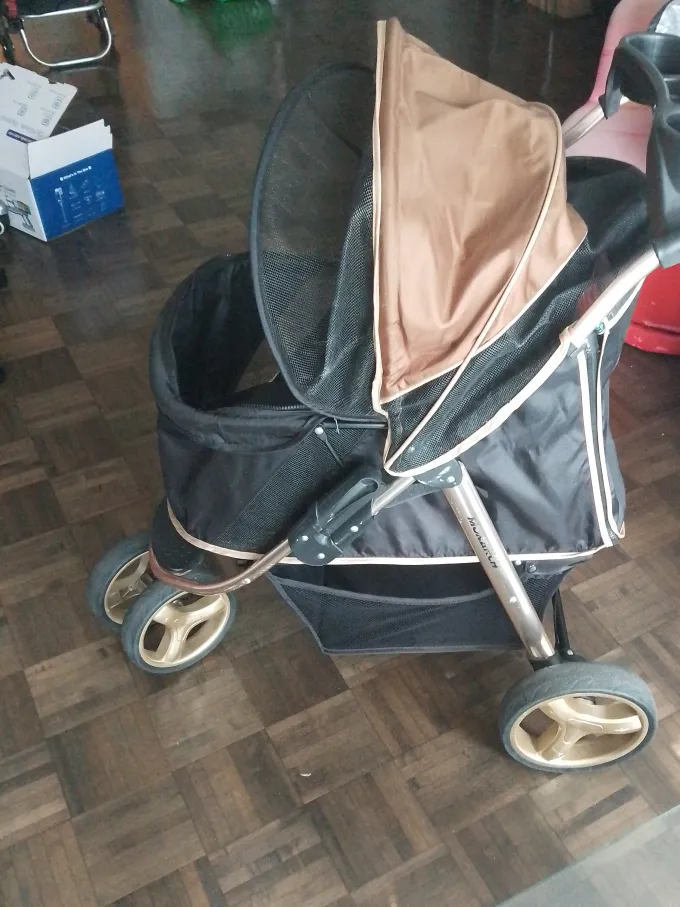Looking to give your furry friend the royal treatment? This ibiyaya Monarch Premium Pet Stroller is just the ticket! It's in great shape and ready for new adventures. The stroller has a recommended weight limit of 44 lbs / 20 kg, so it's perfect for small to medium-sized pets. The dimensions are approximately 40.6" in height and 37.8" in length. Always reference your pet's length and height when selecting a stroller size