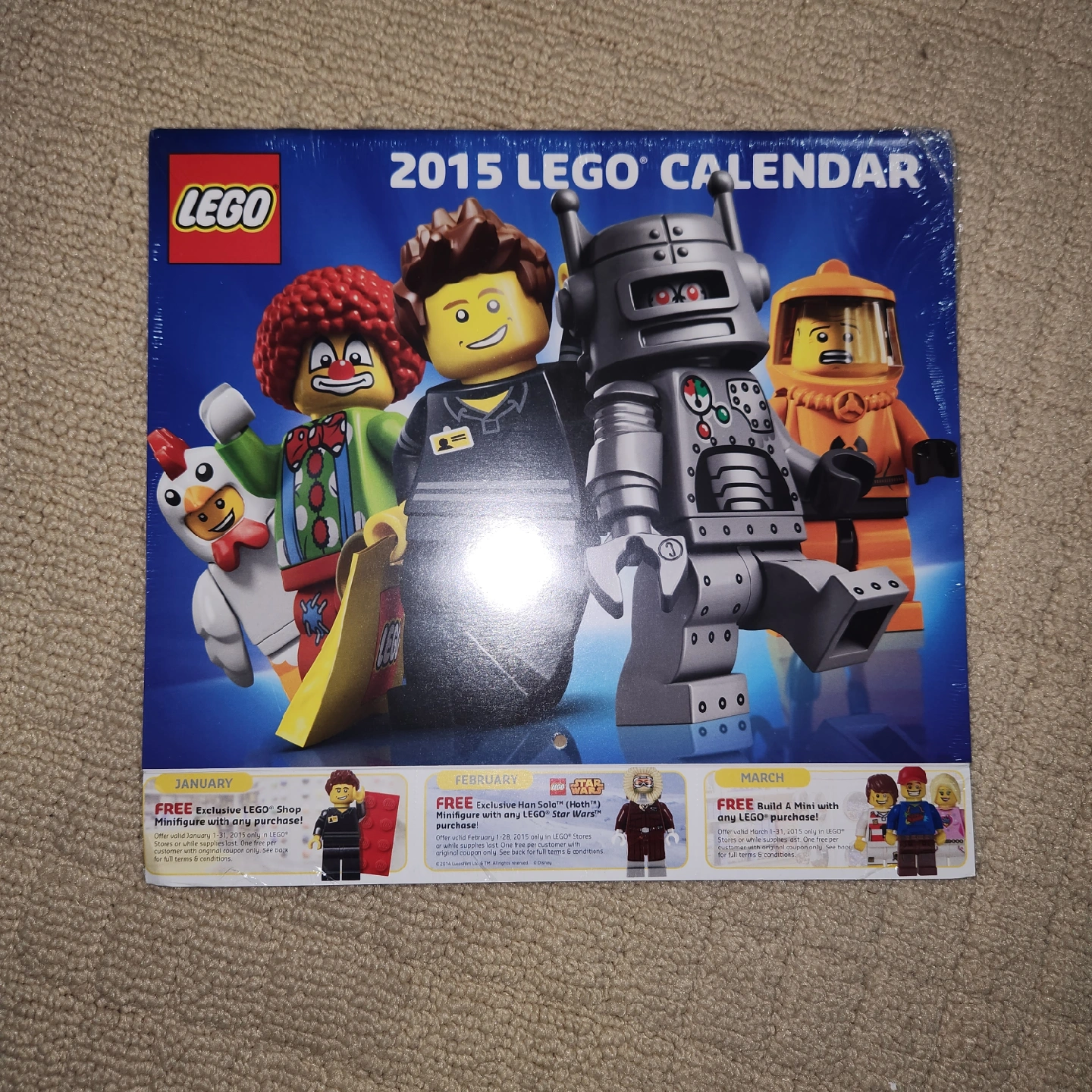 Selling a LEGO 2015 calendar. It's still sealed in its original packaging! The calendar features exclusive LEGO Shop Minifigure offers for January, February, and March. A fun collectible for any LEGO enthusiast