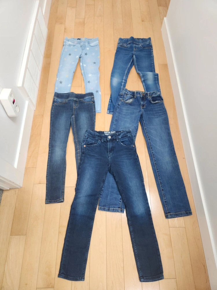 Selling a bundle of girls' jeans - size 8/10 (kids) in great condition. There are 5 pairs in total, including brands like Gap, Roots & George. Comes from a smoke and pet free home