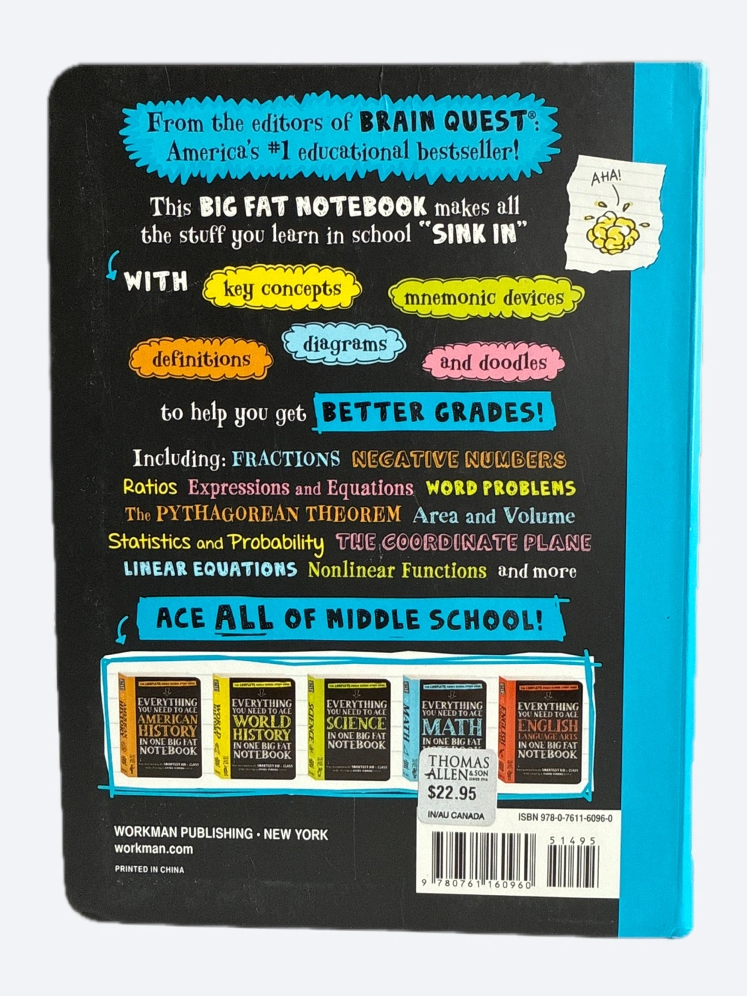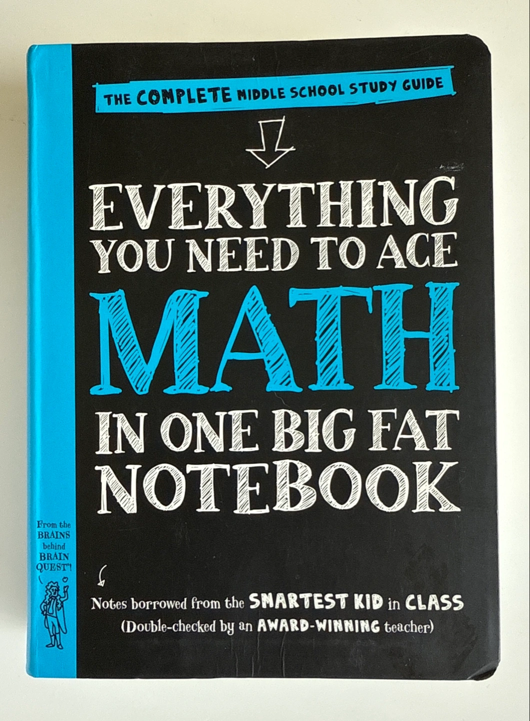 10Selling a copy of 'Everything You Need to Ace Math in One Big Fat Notebook'! This complete middle school study guide is perfect for students looking to brush up on their math skills. It includes notes borrowed from the smartest kid in class and double-checked by an award-winning teacher.