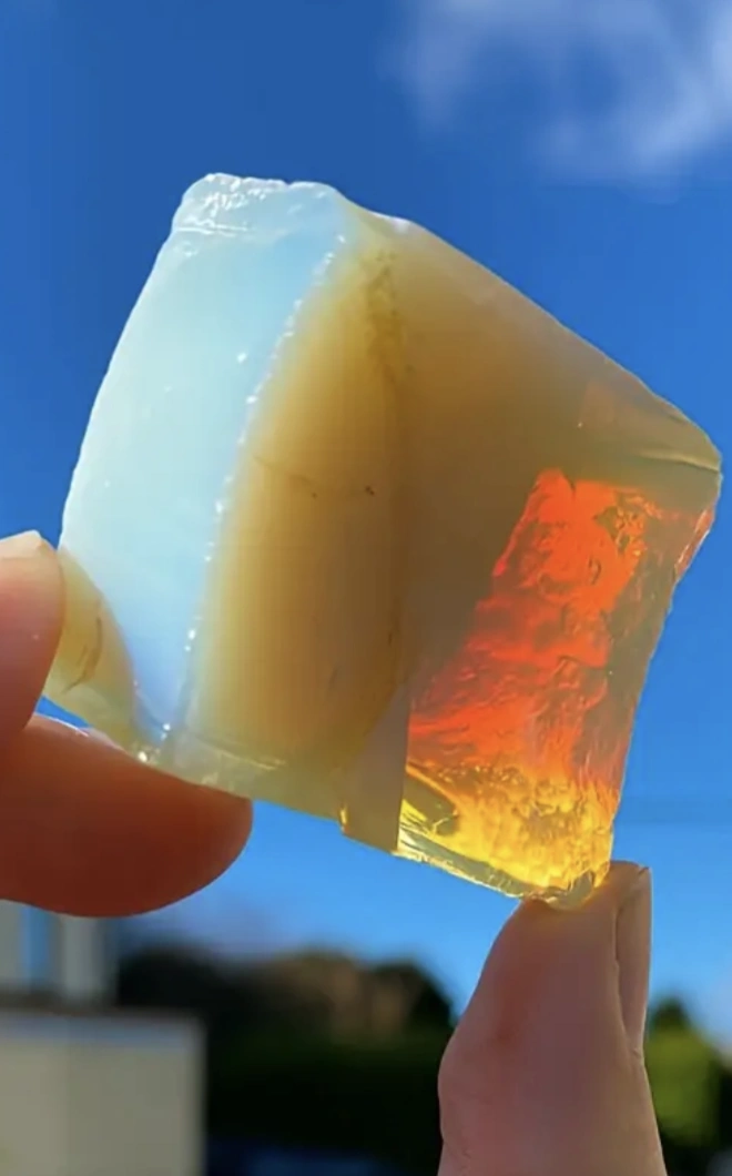 Selling a beautiful opalite stone. It has a lovely translucent quality with a mix of white, yellow, and orange hues.