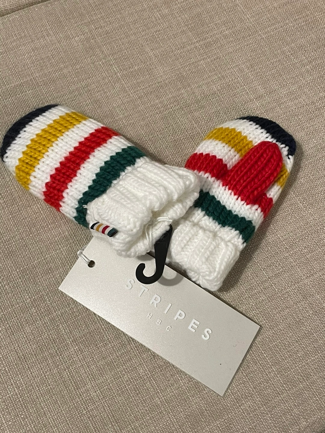 New with tags HBC infant mittens. Bought as a gift but never given to recipient and now she is too big for them :P
