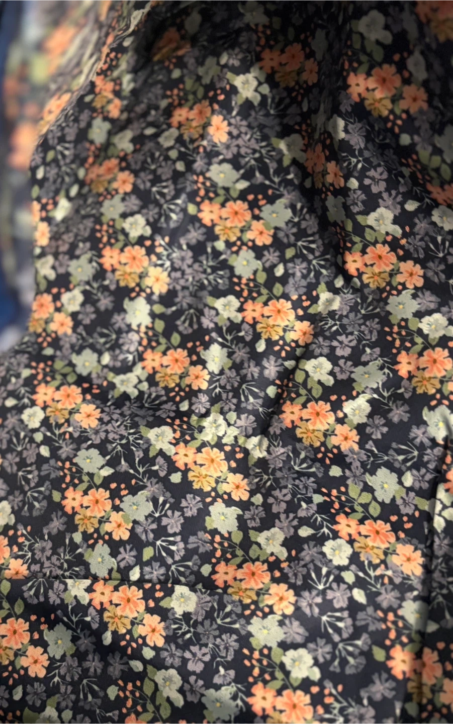 Navy blue corduroy tote bag with a cute floral print lining. It has a handy tie closure. This bag is roomy and great for everyday use!