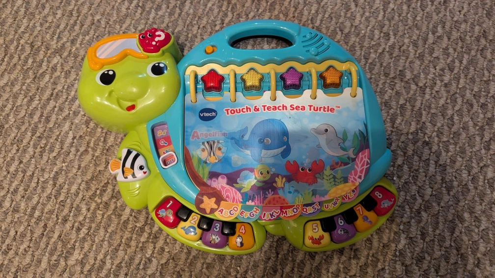 I'm selling a VTech Touch & Teach Sea Turtle toy! It's in great shape and ready for a new home. This interactive toy is perfect for little ones learning their ABCs and numbers. It features colourful buttons and engaging sounds to keep kids entertained while they learn. Retails for $29.97 at Walmart. Excellent condition. Batteries operational.