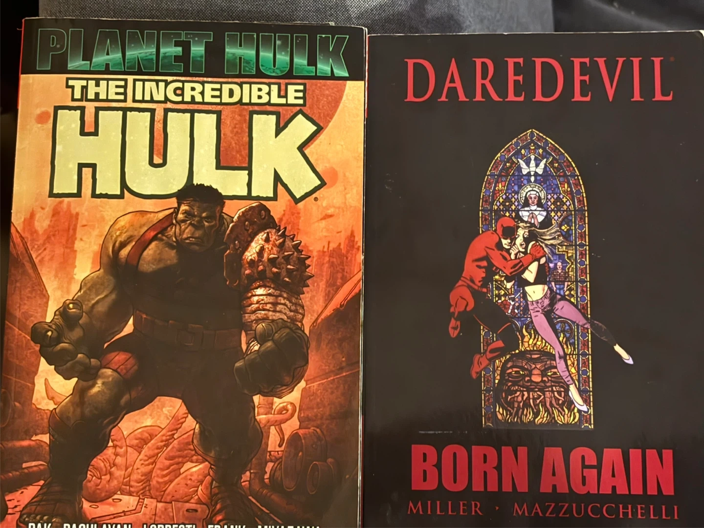 Selling the Planet Hulk and Daredevil Born Again comic books for $20. They're in great shape and ready for a new home! Perfect for any Marvel fan looking to expand their collection.