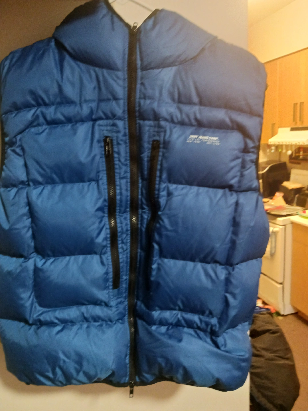 540Selling a new DKNY Jeans puffer vest in a vibrant blue! It's a size L and made with 100% polyester. Perfect for adding style and comfort to your wardrobe. Two front pickets, one hidden interior pocket. A zipper that can slide up and out of the way from your belt.
