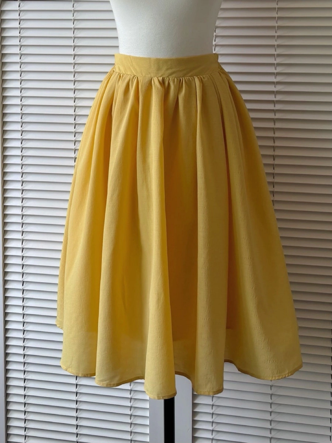 A feminine and timeless vintage skirt by Ropé Picnic, designed in a flattering A-line silhouette. This flowing piece features a comfortable elastic waistband and is fully lined, offering both structure and ease of movement. Its versatile design makes it perfect for daily wear, casual outings, office styling, or pairing with retro-inspired tops for a classic cottagecore look.