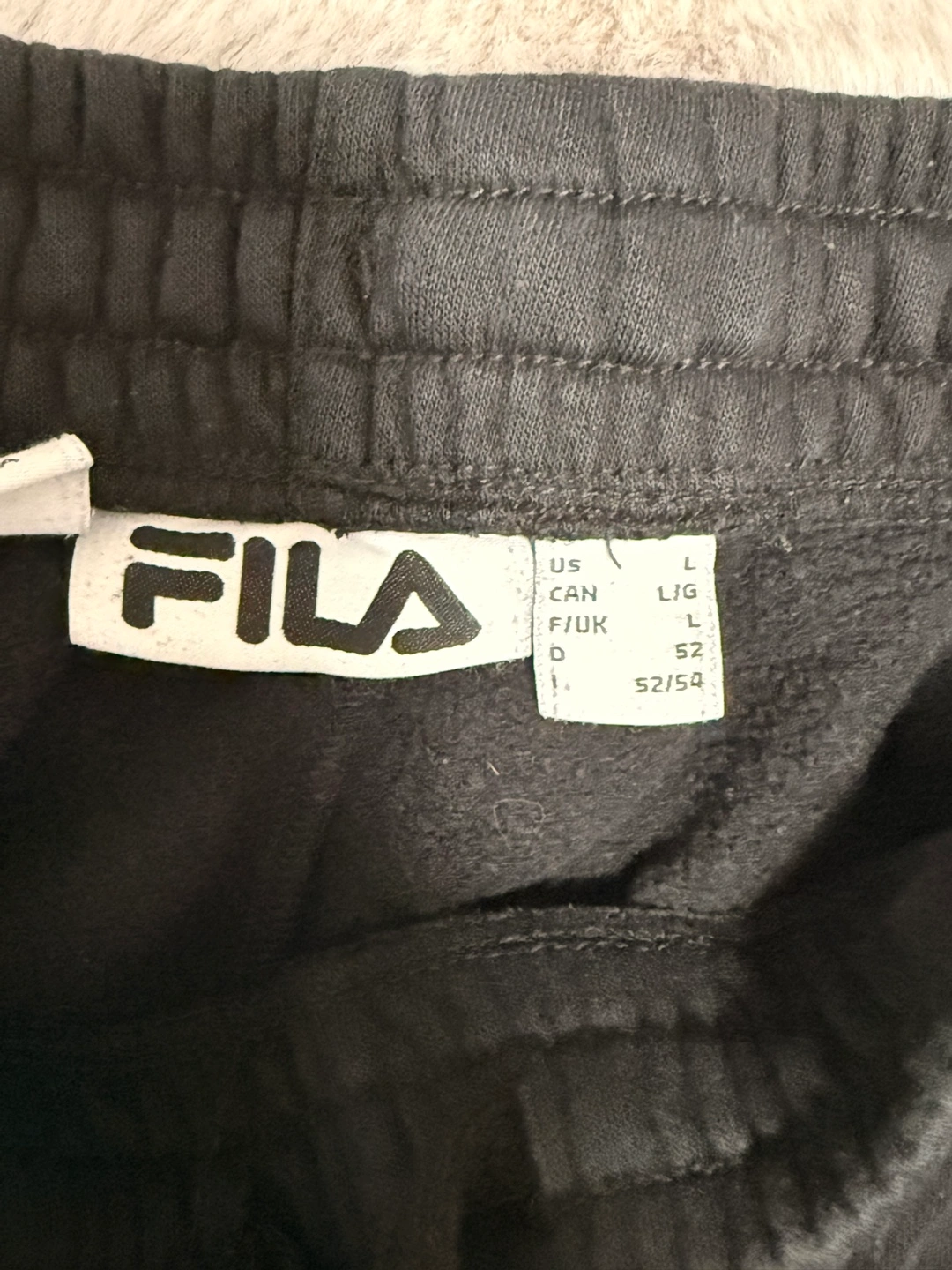 Selling a pair of Fila black sweatpants in size L. They're in great condition and super comfy for lounging around or hitting the gym. The Fila logo is on the upper left leg. Perfect for everyday wear!