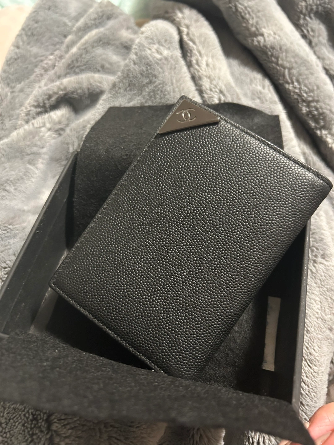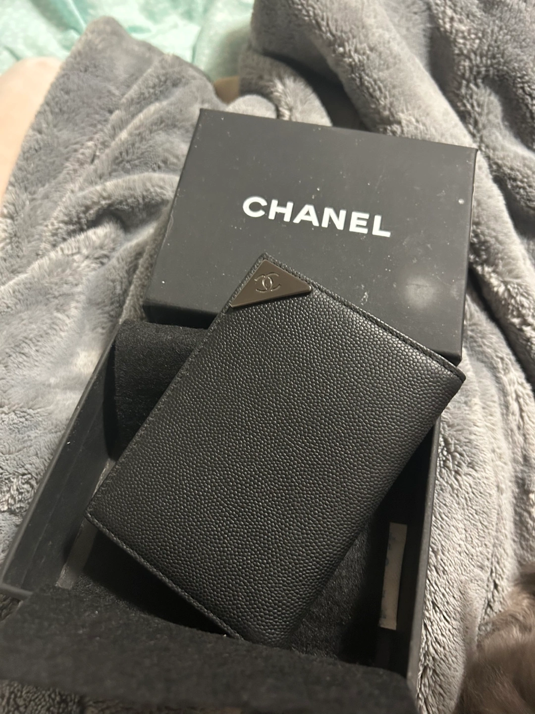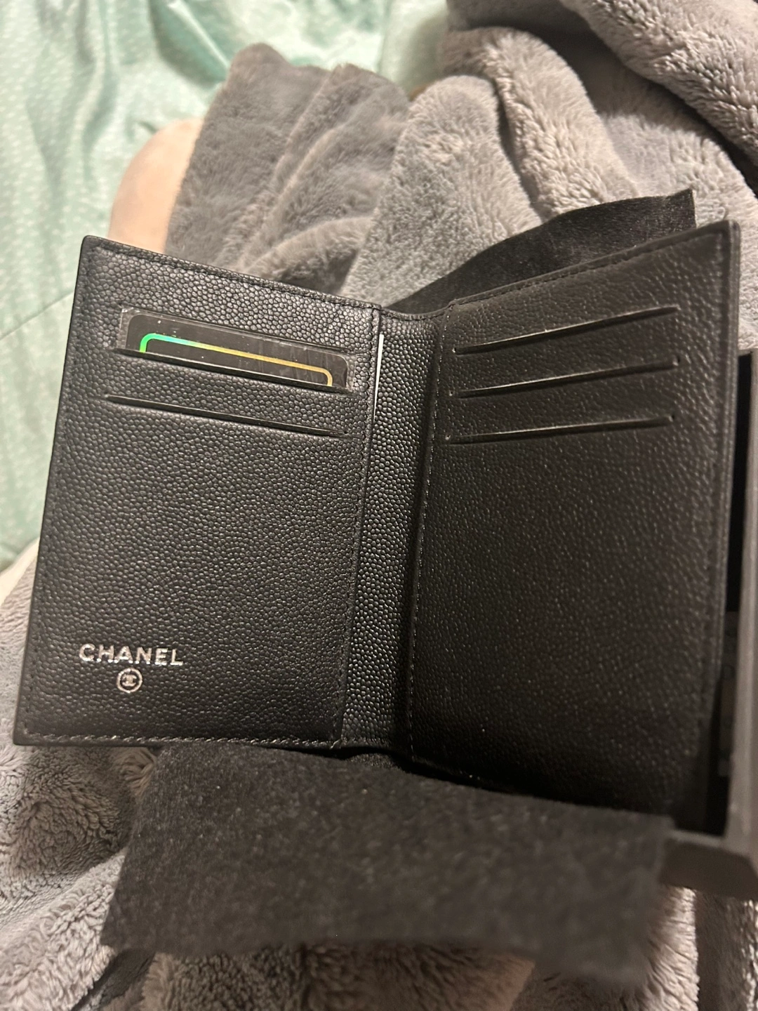 26Selling a black wallet, in excellent condition. It comes with its box. The wallet is made of leather and has the Chanel logo on the front and inside. It's a stylish and practical accessory!