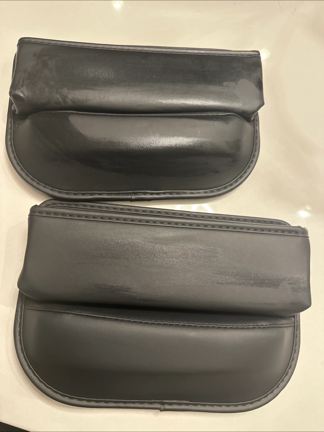 Selling a pair of car seat gap organizers. They're black and made of leather. They're in good condition and ready to use!