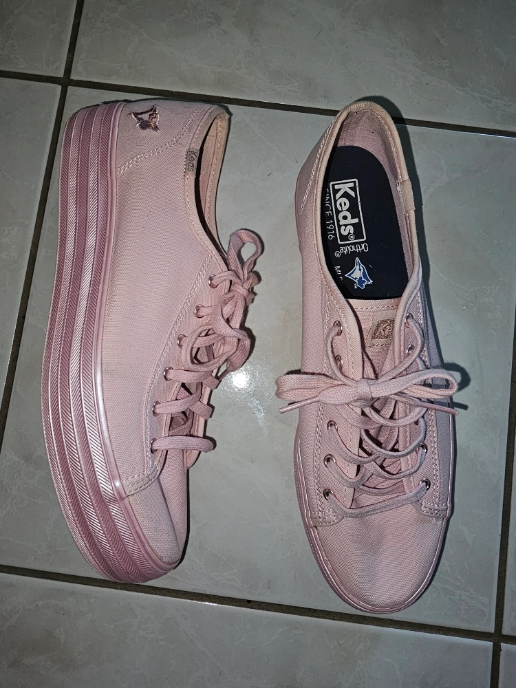 75Keds platform sneakers in a lovely pink color! They are a women's size 10 and in good condition. These shoes are super cute and comfortable for everyday wear