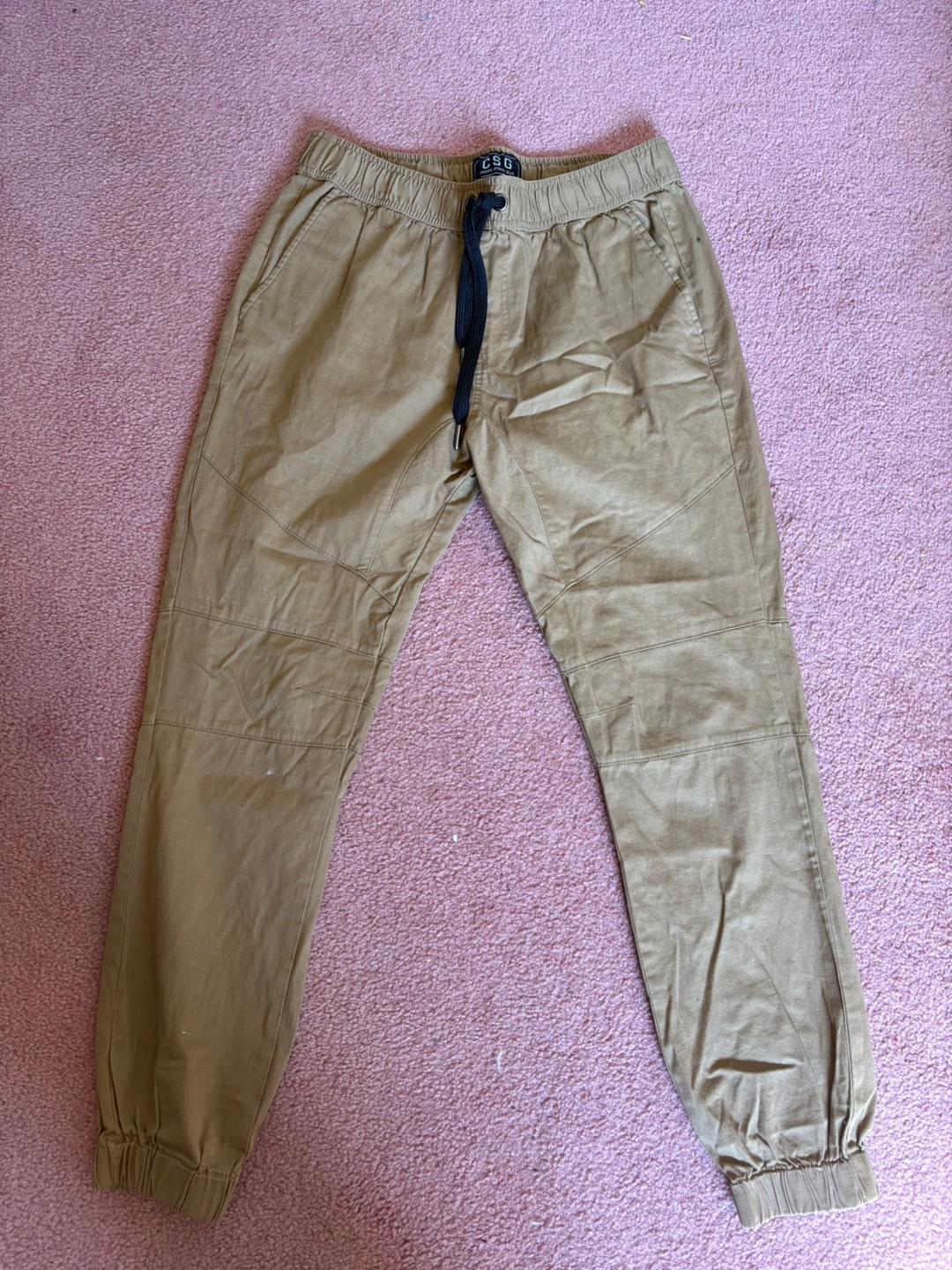 Selling a pair of CSG Champs Sports Gear joggers in size large. They're in great condition and ready for a new home! The colour is a nice neutral khaki.