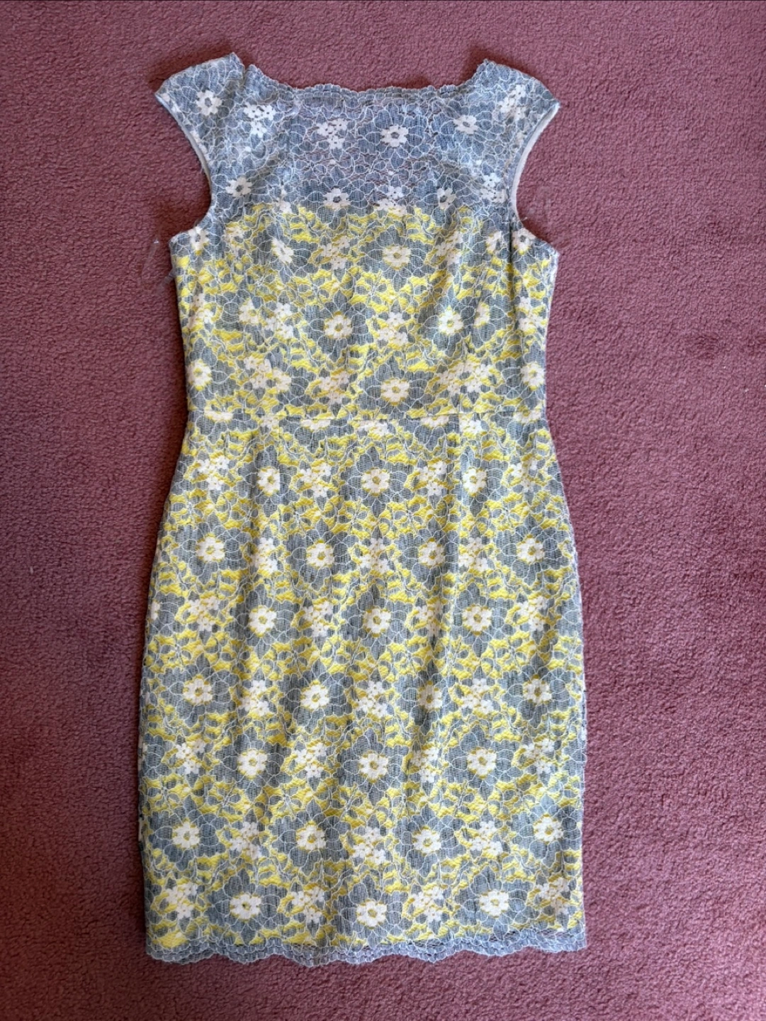 Selling a Maggy London for Melanie Lyne dress in size 12! The dress features a lovely floral pattern with yellow and grey accents. It's perfect for a special occasion or a stylish day out. The dress has a zipper in the back for easy wear. Cash only