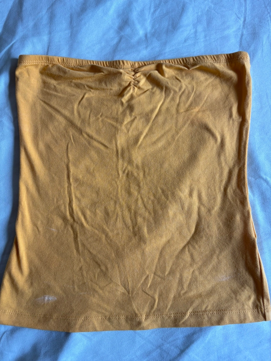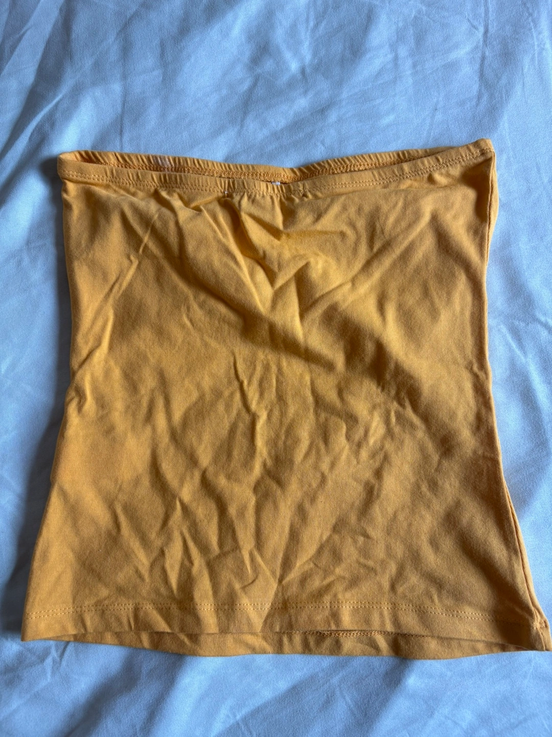 Cute yellow tube top from SW essentials in size small. It's perfect for layering or wearing on its own. There are some small marks on the front, as shown in the photos will come out in wash. Cash only