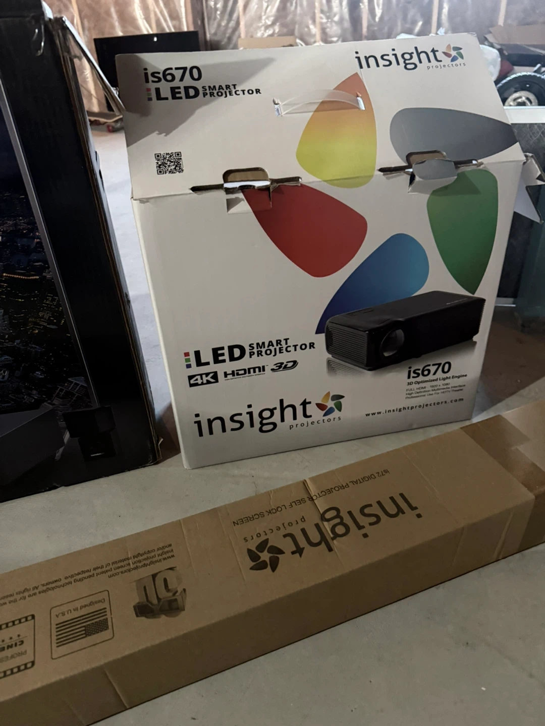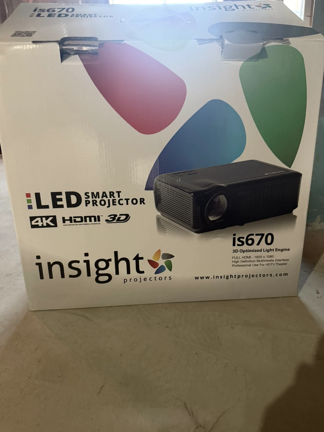 Selling an Insight Projectors is670 LED Smart Projector. It's an LED Smart Projector with 4K, HDMI, and 3D capabilities. The box includes the is670 3D Optimized Light Engine, offering Full HDMI 1920 x 1080 resolution and a user-friendly interface, perfect for your home theatre. It also comes with screen. All included