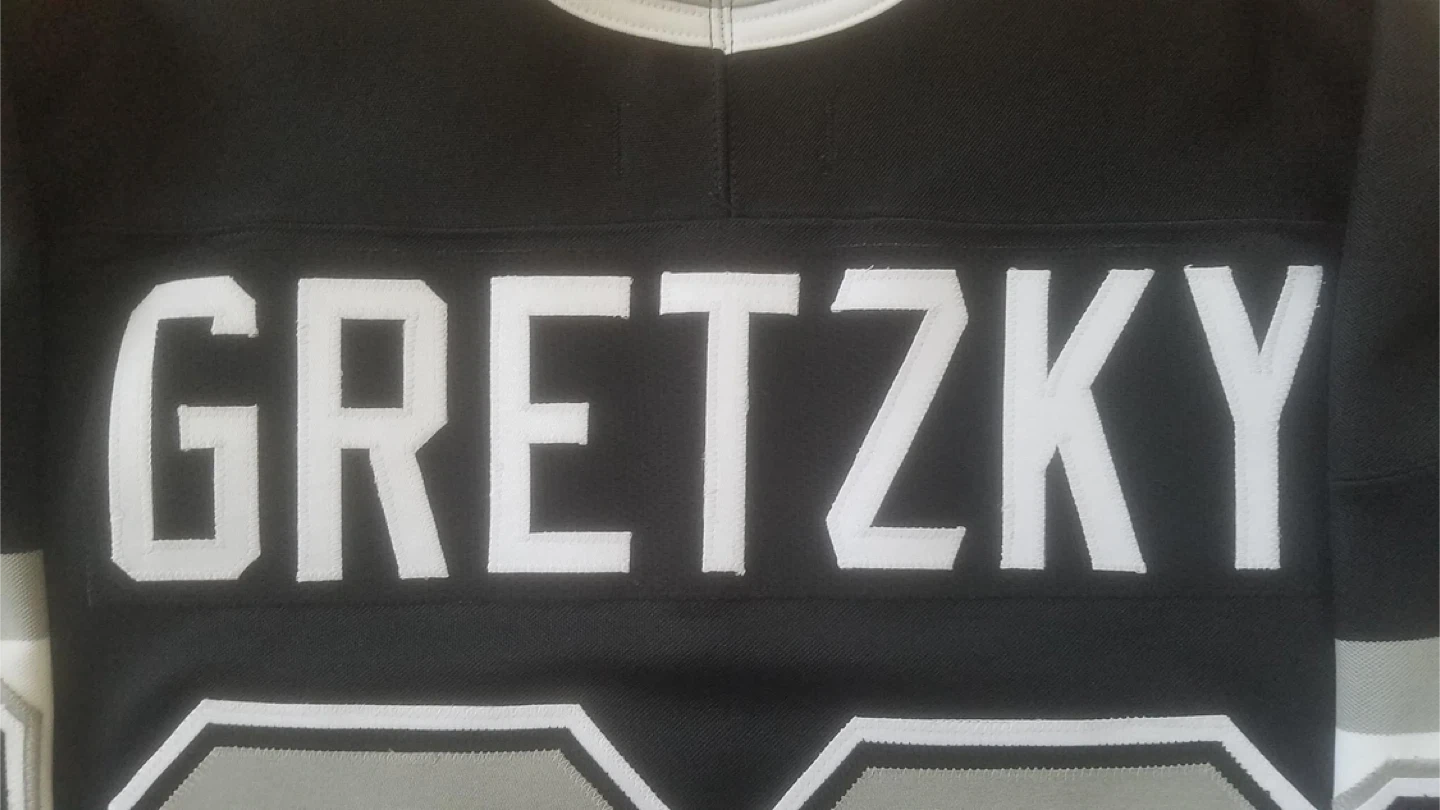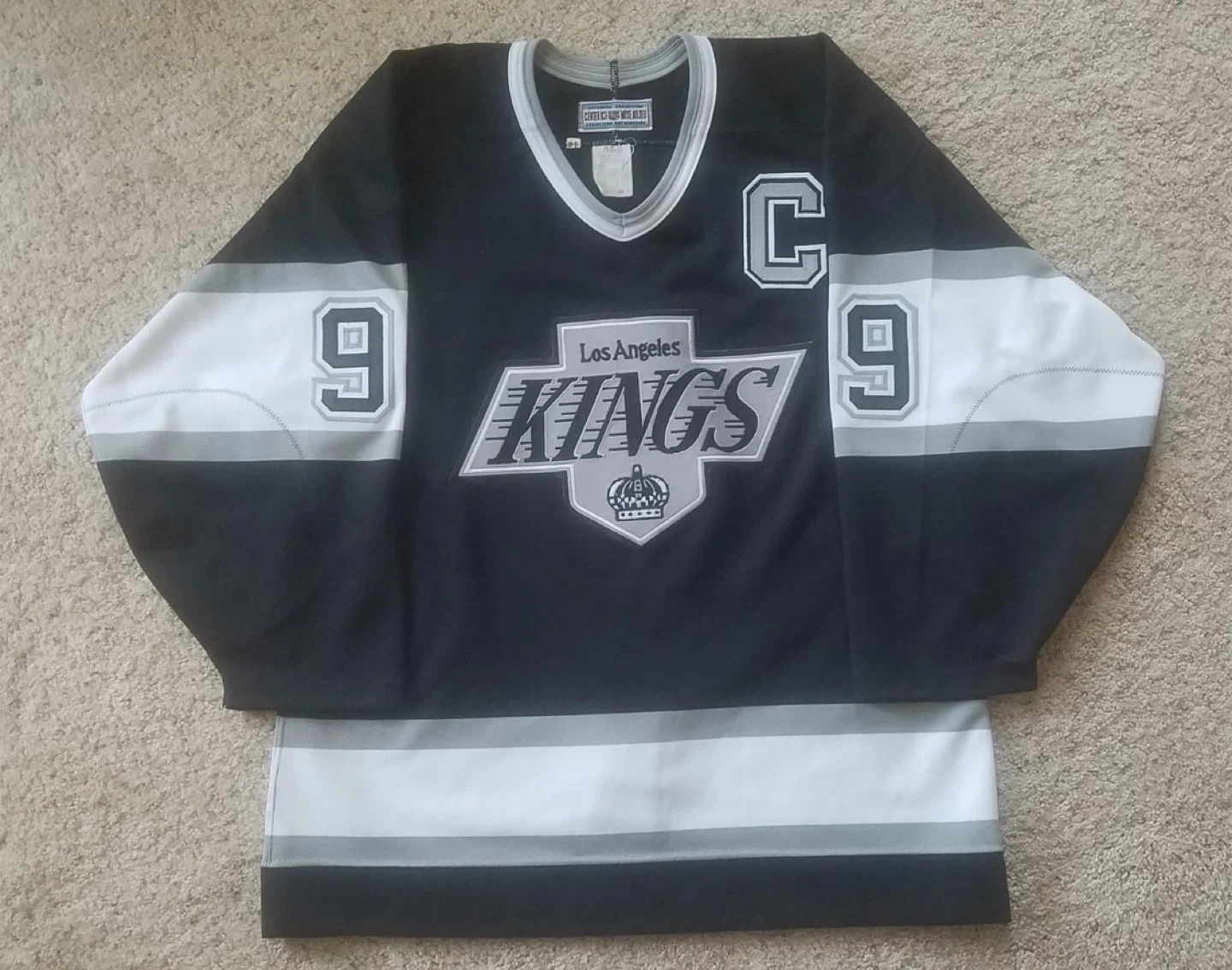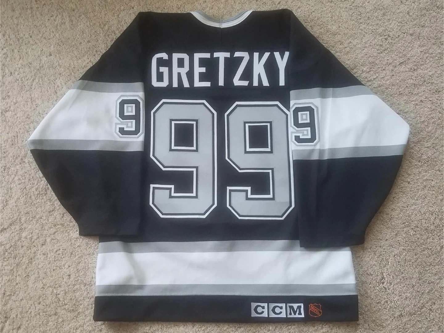 Selling a Gretzky #99 Los Angeles Kings hockey jersey! It's black, white, and grey, with the Kings logo on the front and Gretzky's name and number on the back