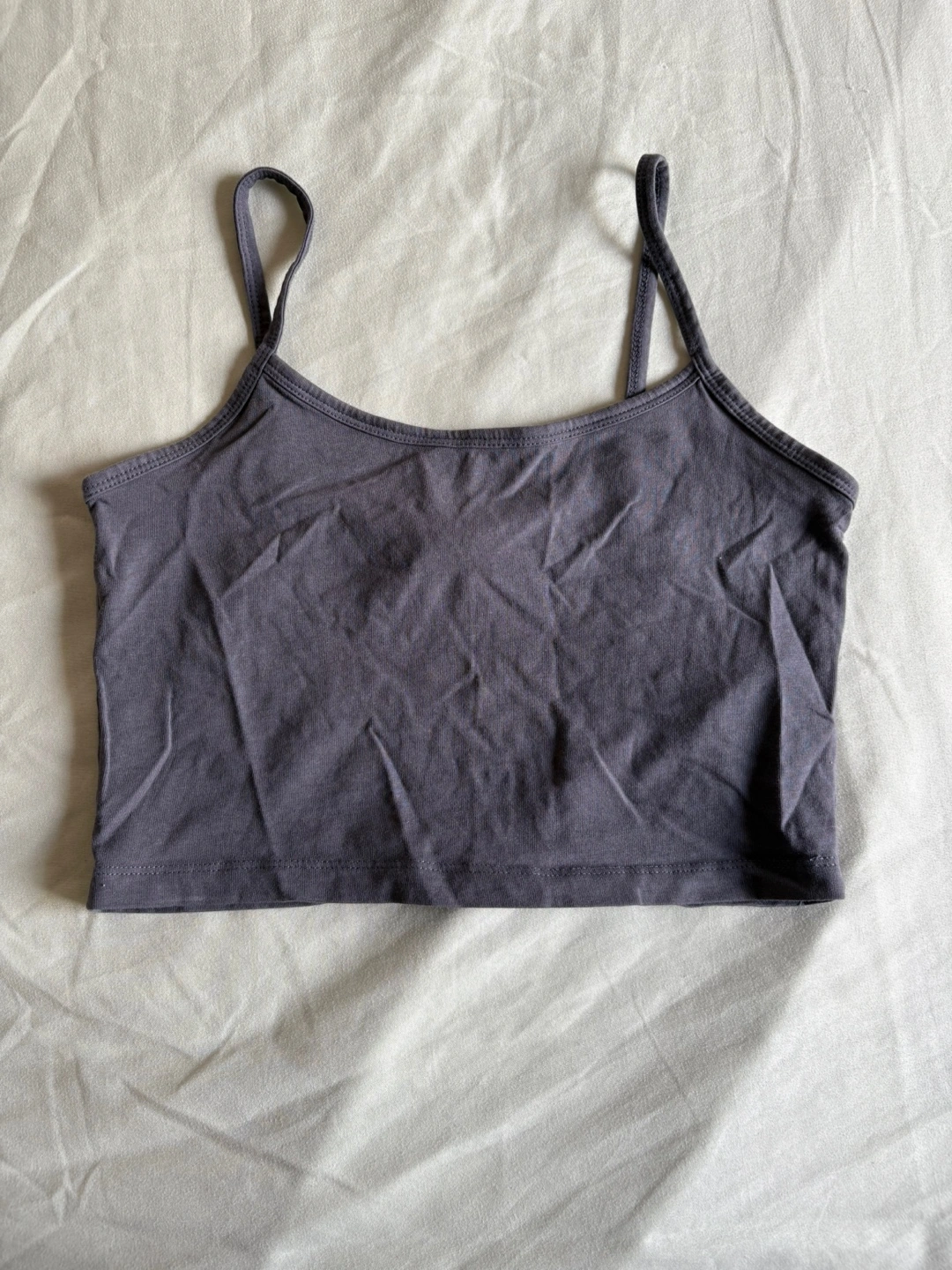 Selling a cute grey cropped tank top from Forever 21 in size medium! It's in great condition and perfect for layering or wearing on its own. The material is soft and comfy, making it a great addition to any wardrobe.