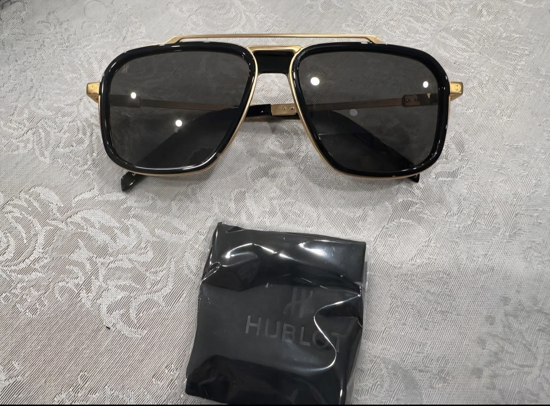 Selling a pair of Hublot sunglasses in black and gold. They come with the original box and a cleaning cloth. These sunglasses are in great condition and ready for a new home!