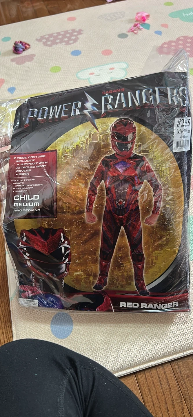 60Selling a brand new, in-package Power Rangers Red Ranger costume for kids! This is a 2-piece costume that includes a jumpsuit with attached boot covers and a mask Perfect for Halloween or dress-up!