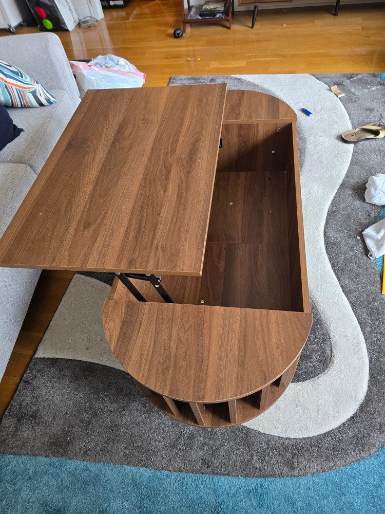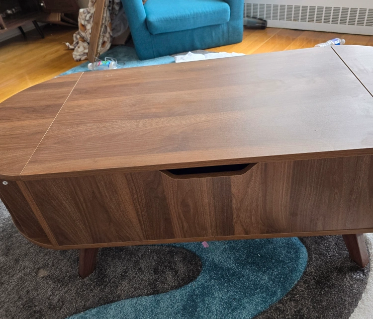 Selling a brown lift-top coffee table. It's in great condition and perfect for small spaces. The lift-top design provides extra storage and a convenient surface for working or eating. This table is both stylish and functional!