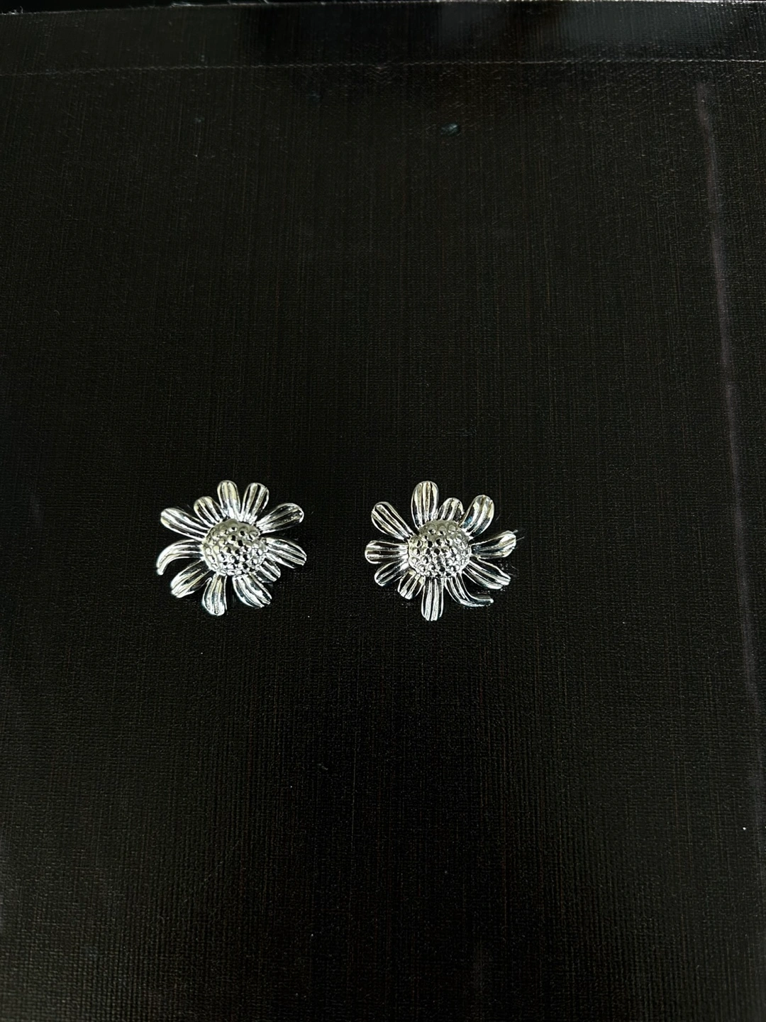 Cute pair of daisy stud earrings in silver colour. Perfect for adding a touch of floral charm to any outfit! tarnish free does not change color