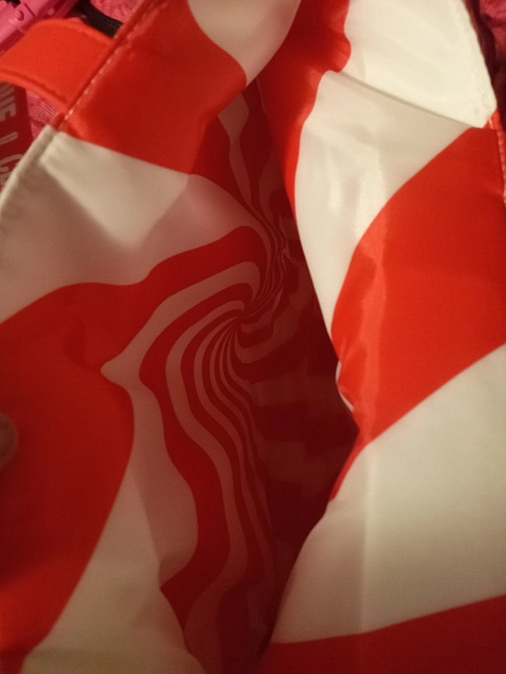 30Cute Clinique tote bag in metallic silver with red straps! The inside has a fun red and white striped pattern