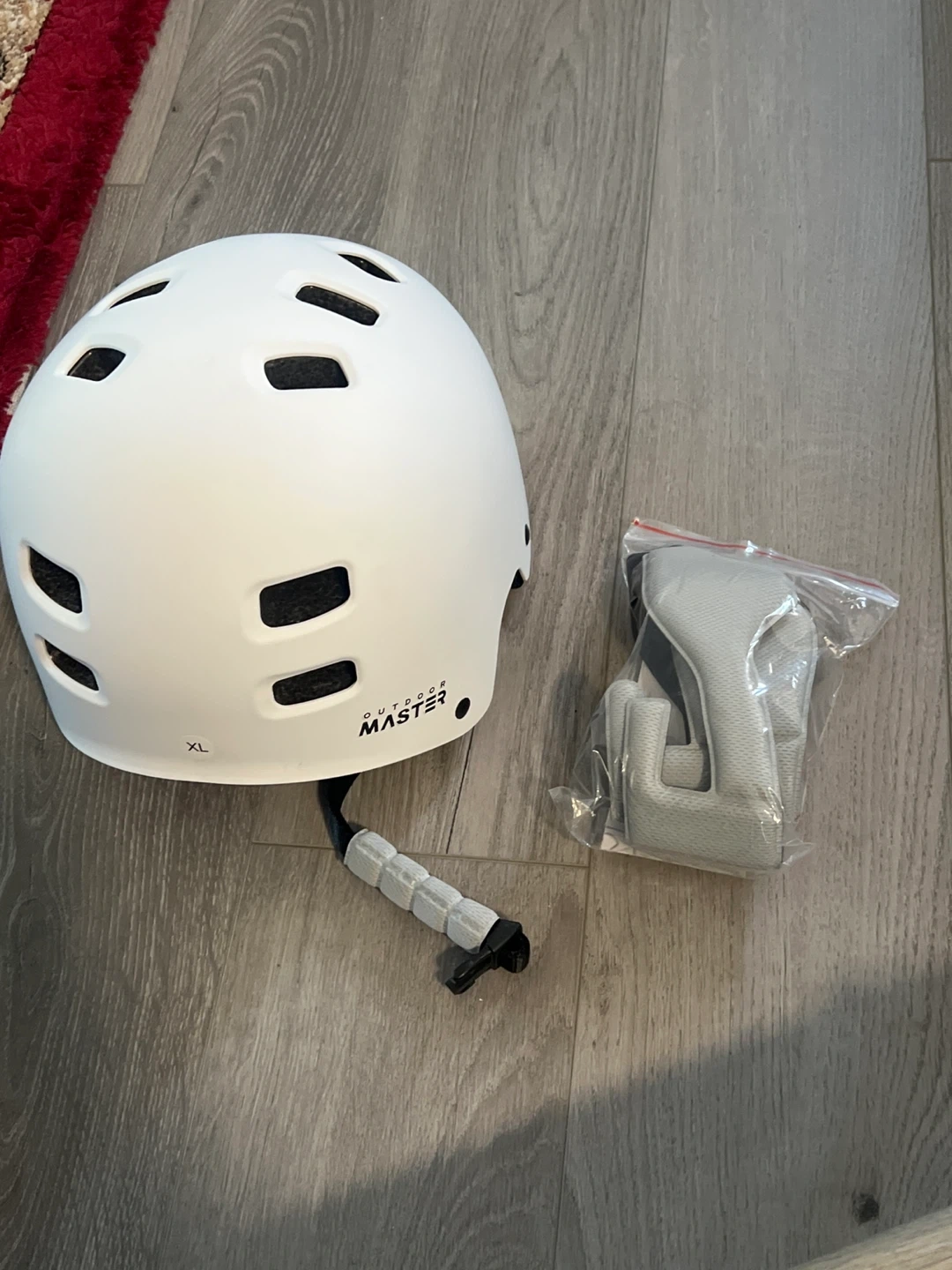 Selling an Outdoor Master helmet in excellent condition! It's white and size XL. Comes with extra padding still in its original packaging. Perfect for biking or skating!