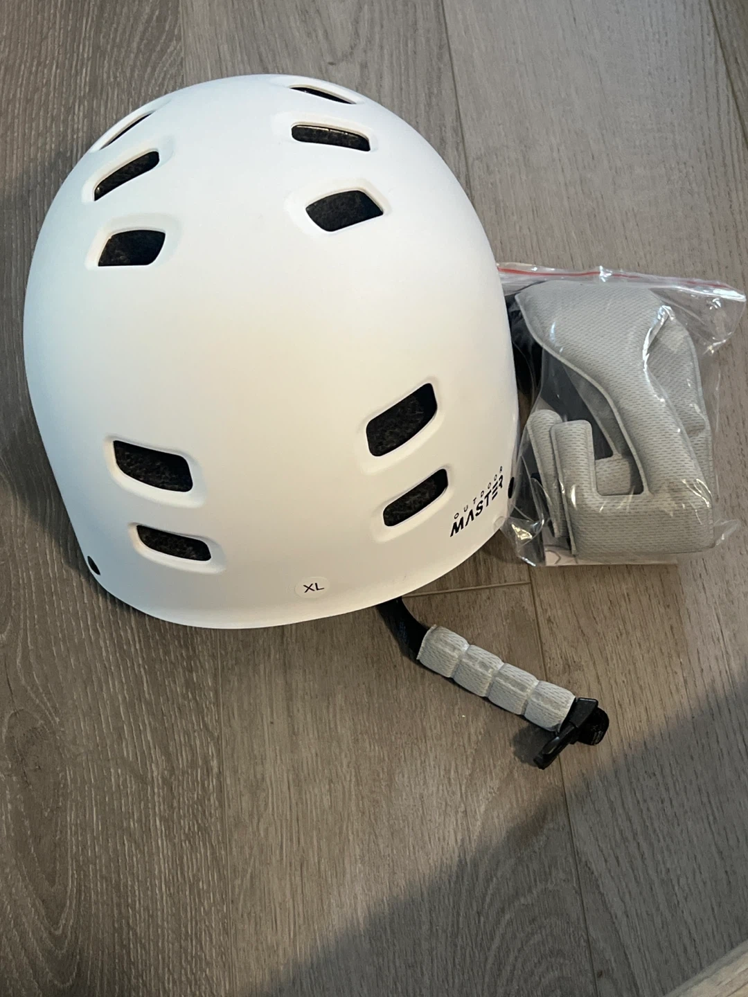 Selling an Outdoor Master helmet in excellent condition! It's white and size XL. Comes with extra padding still in its original packaging. Perfect for biking or skating!