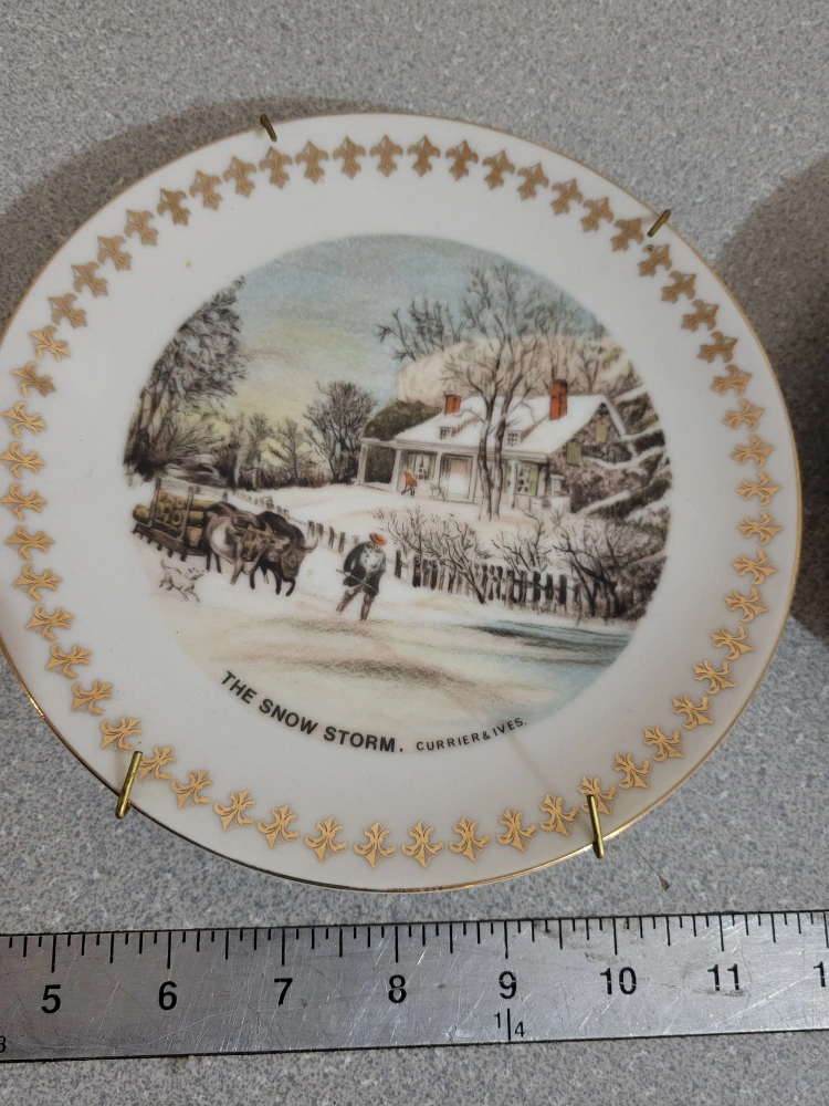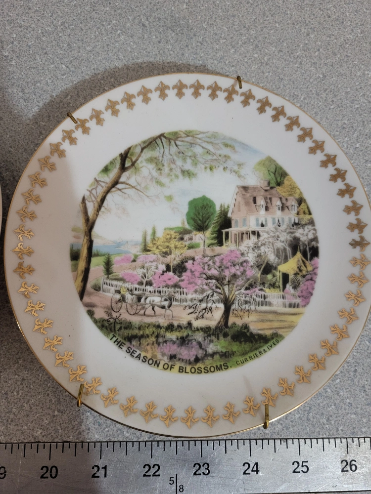 Selling a set of four decorative plates by Currier & Ives. Each plate features a different seasonal scene: "The Season of Blossoms", "Autumn in New England", "Summer in the Country", and "The Snow Storm". They would look great on display! Note: last plate in the photos has a tiny chip. Available for pick up dntwn St.Catharines at St. Paul St. and James St. Shipping Available at buyers' expense. Feel free to check out my other listings! :)