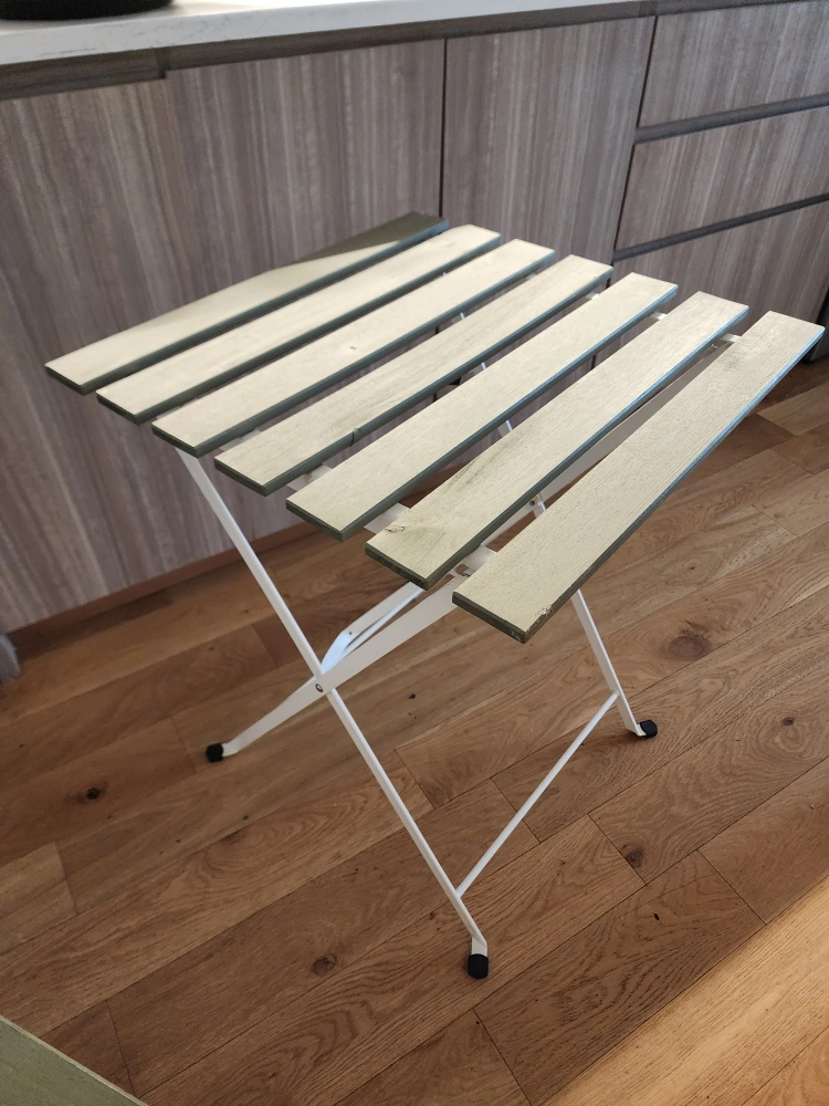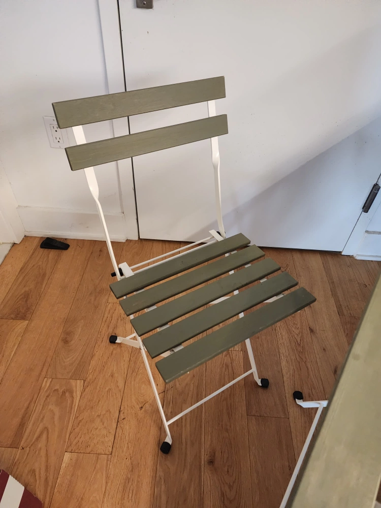 Selling a foldable outdoor chair from IKEA! It's the Tarno model, perfect for small spaces like balconies or patios. The chair is green and made of solid acacia and steel. It's lightweight and easy to store when not in use