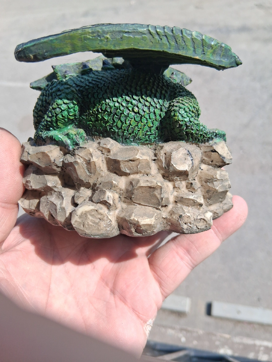 Here's a cool green dragon figurine! It's made of what looks like resin and features three dragon heads on a rocky base. It's a unique little piece for any dragon lover