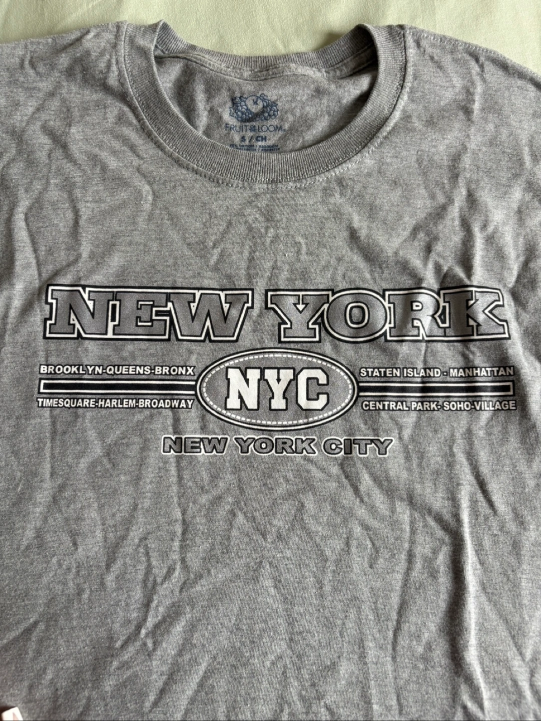 Selling a Fruit of the Loom T-shirt with a New York City graphic. It's a size small and made of a comfy cotton blend. Perfect for showing off your love for NYC! Payment: Cash only Location: Rossland and Church or Durham College Oshawa