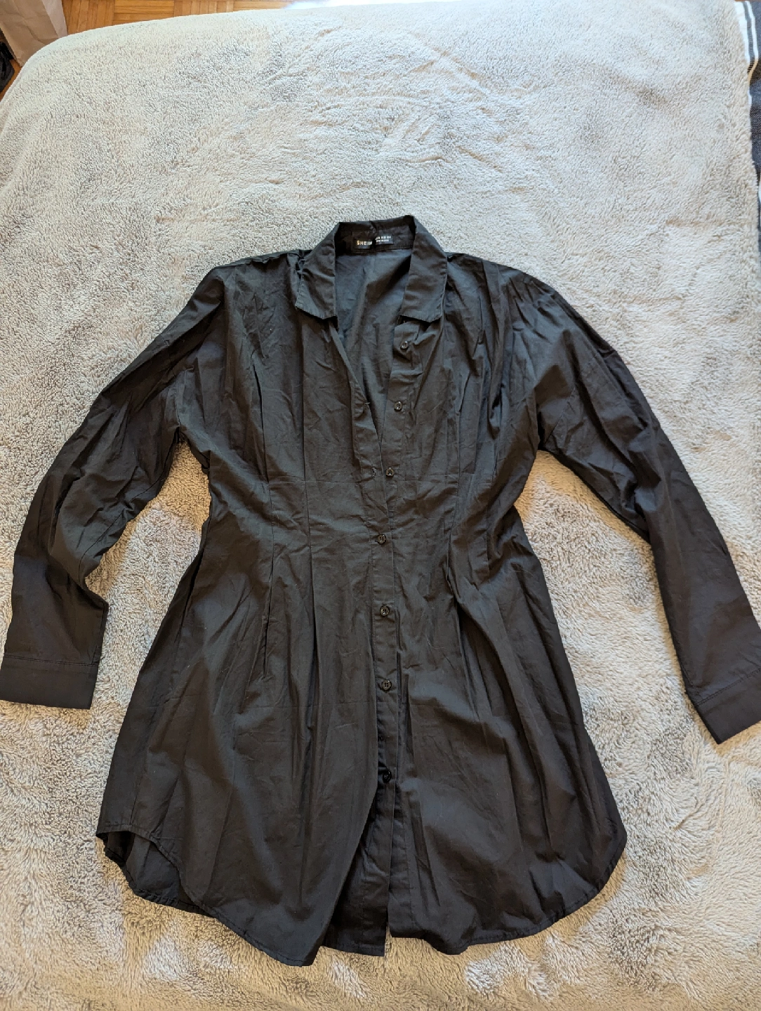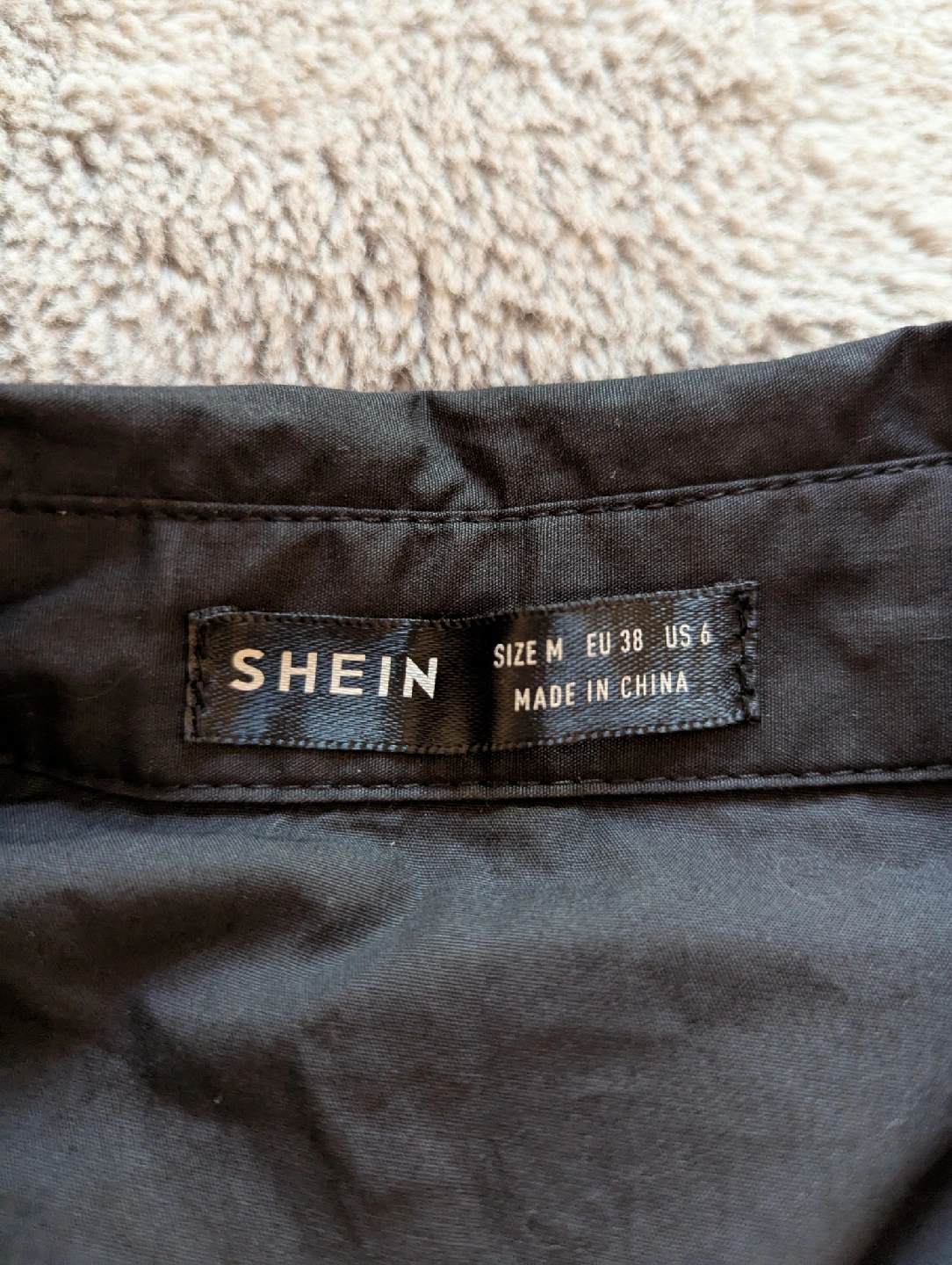 Je vends une chemise noire de marque Shein, de taille M. Elle est en bon état et pourrait bien compléter votre garde-robe! C'est une taille M (US 6, EU 38).
