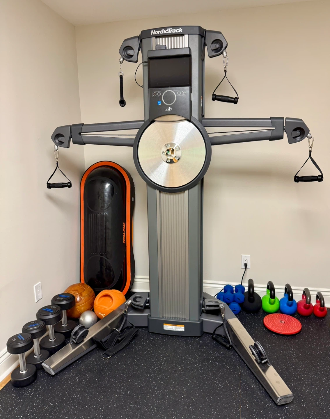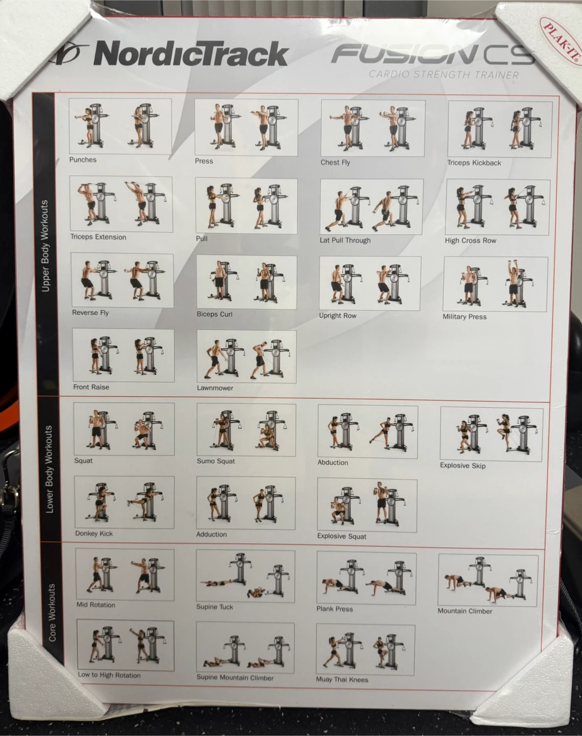135‼️ d o w n s i z i n g ‼️ 📍 pick up near Greenbank / Hunt Club 🚨 Only used a handful of times so basically new! Sad to see it go but we won’t have space for it in our new home. Also includes the poster we had professionally framed ($$$). And I t’s still in the packaging. 😅 Get a whole-body workout in the comfort of your own home with the NordicTrack Fusion CST home gym! Its 6-pulley system lets you target various muscle groups, while the included Portal 10i tablet can help you guide your workout. Key features include: - Inertia-enhanced flywheel offers smooth movement during heavy workouts - 6 precision cables in low, mid, and high positions provide versatility so you can target specific muscle groups and switch exercises without adjusting the arms - 6 removable ergonomic handles allow for a convenient and comfortable workout - Included ankle straps can be attached to the low pulleys for working out legs and building muscle strength - 95" independent cable allows for longer movements and can accommodate people of varying heights - Freestanding base lets you set up the exercise machine wherever you want - 2 squat pulleys help you build leg strength - 10" NordicTrack Portal 10i tablet included so you can easily follow your personal trainer and stay on track with your fitness goals - Integrated tablet holder props up the included tablet or your smartphone, and can be easily moved and adjusted - Built-in meter shows you how many watts you're producing and tracks your heart rate on the easy-to-read display - Included wireless Bluetooth chest strap transmits your continuous heart rate to the machine - 20 different power settings help you build strength and boost stamina 🚫 clean, smoke-free home / no pet hair Thank you for your interest! Merci de votre intérêt !