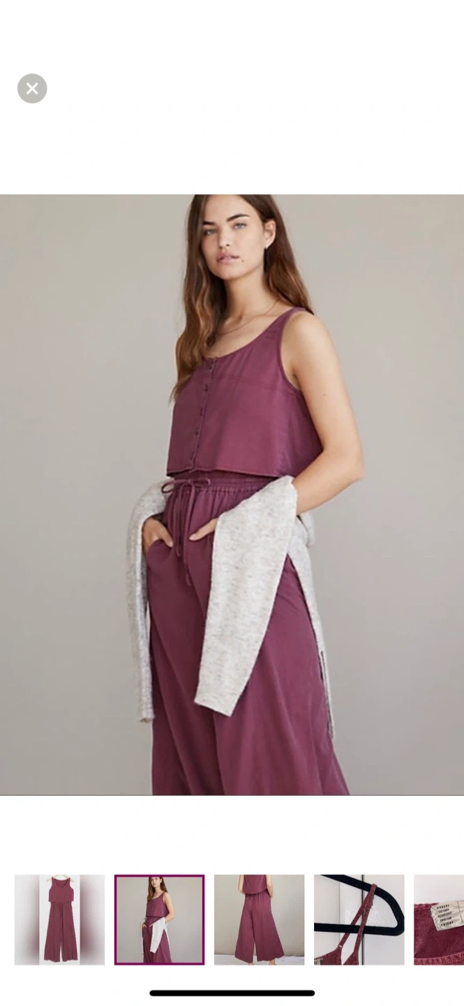 Comfy Anthropologie 'Sunday in Brooklyn' jumpsuit in a warm mauve colour! It's a size medium and features a relaxed fit with a drawstring waist. Perfect for lounging or a casual day out.