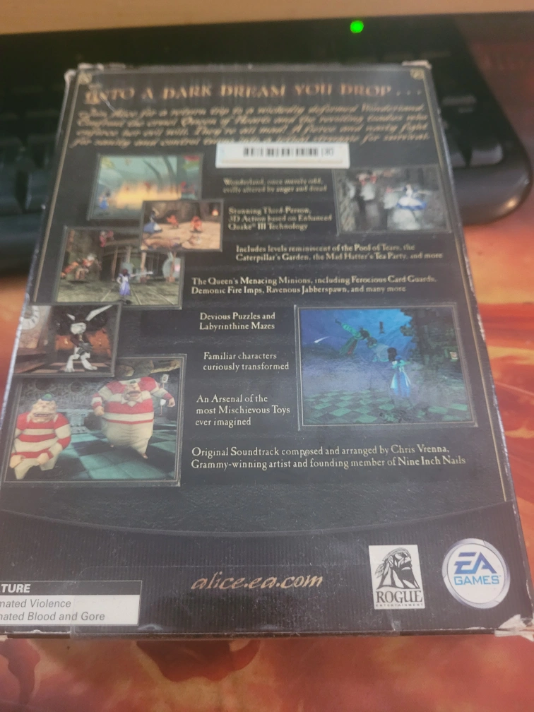Selling the box and manuals for American McGee's Alice for PC! This comes with the original box and install guide. A classic for anyone who enjoys a dark twist on Wonderland.
