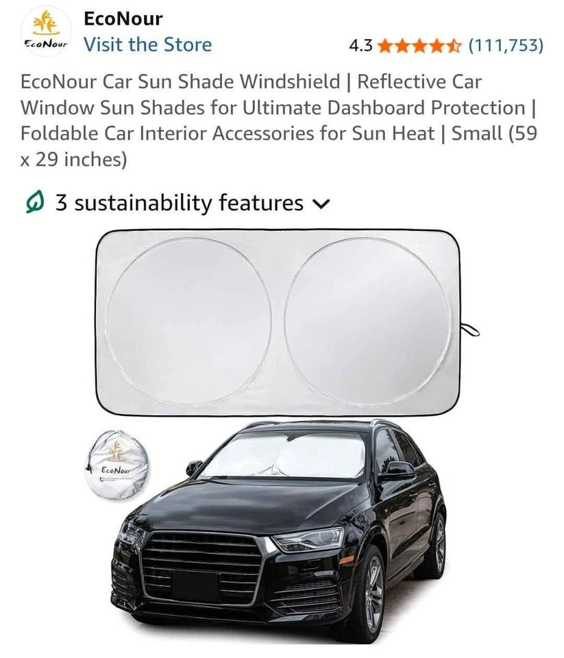 Brand New EcoNour Car Sun Shade Windshield | Reflective Car Window Sun Shades for Ultimate Dashboard Protection | Foldable Car Interior Accessories for Sun Heat | Small (59 x 29 inches)
