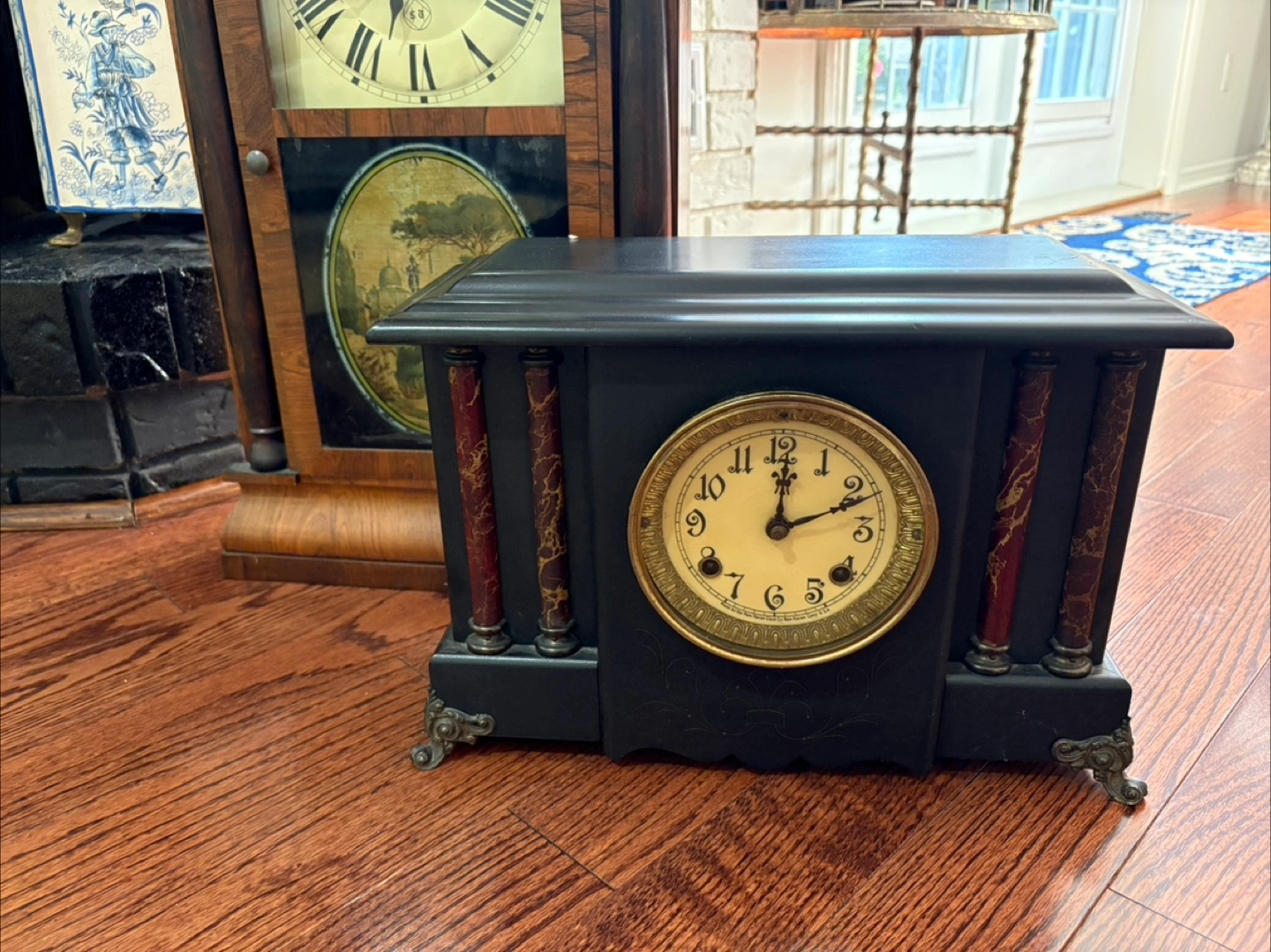 Bring timeless charm and craftsmanship into your home with two vintage American mantel clocks — a New Haven Clock Co. No. 3454 and a Seth Thomas / Thomaston Clock. Perfect for collectors, restorers, or vintage décor enthusiasts! Clock Details: 🔹 New Haven Mantel Clock - Model No.: 3454 - Measurements: 38 cm (L) x 14 cm (W) x 29 cm (H) - Vintage American craftsmanship with classic antique detailing 🔹 Seth Thomas / Thomaston Mantel Clock - Includes original winding key 🔑 - Measurements: 38 cm (L) x 11.5 cm (W) x 64 cm (H) - Iconic Seth Thomas design with elegant wooden casing ⚠️ Condition: Neither clock is currently working, but both have restoration potential. With the right expertise, they can be brought back to life and cherished for years to come. ⭐ Why You’ll Love Them: These clocks are more than just timepieces — they’re pieces of history. Their craftsmanship, materials, and intricate designs make them perfect for antique lovers, restoration projects, or adding vintage character to your space. 💲 Price: $120 for both (or $70 each) — a rare find for collectors! 📍 Pickup in Thornhill | 🚚 Local Delivery Available