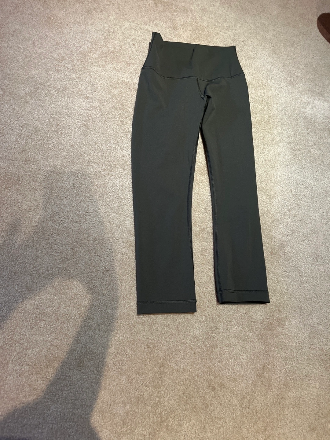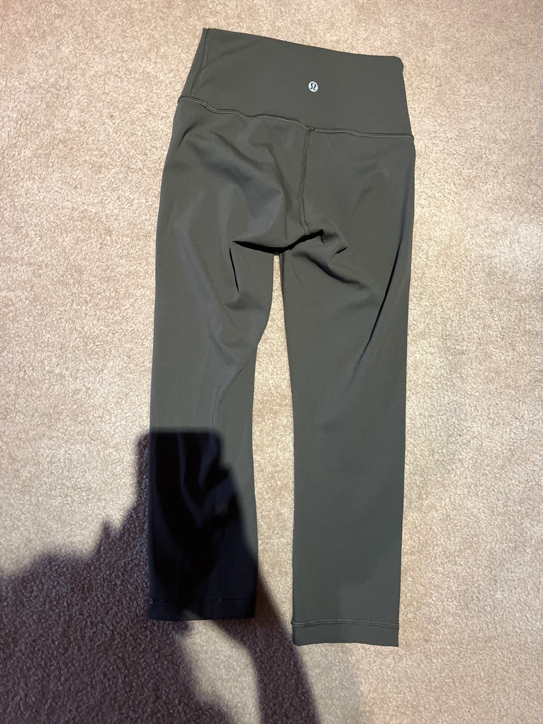 Selling a pair of Lululemon crop leggings in olive green! These are in great condition and ready for a new home. Perfect for yoga, running, or just lounging around