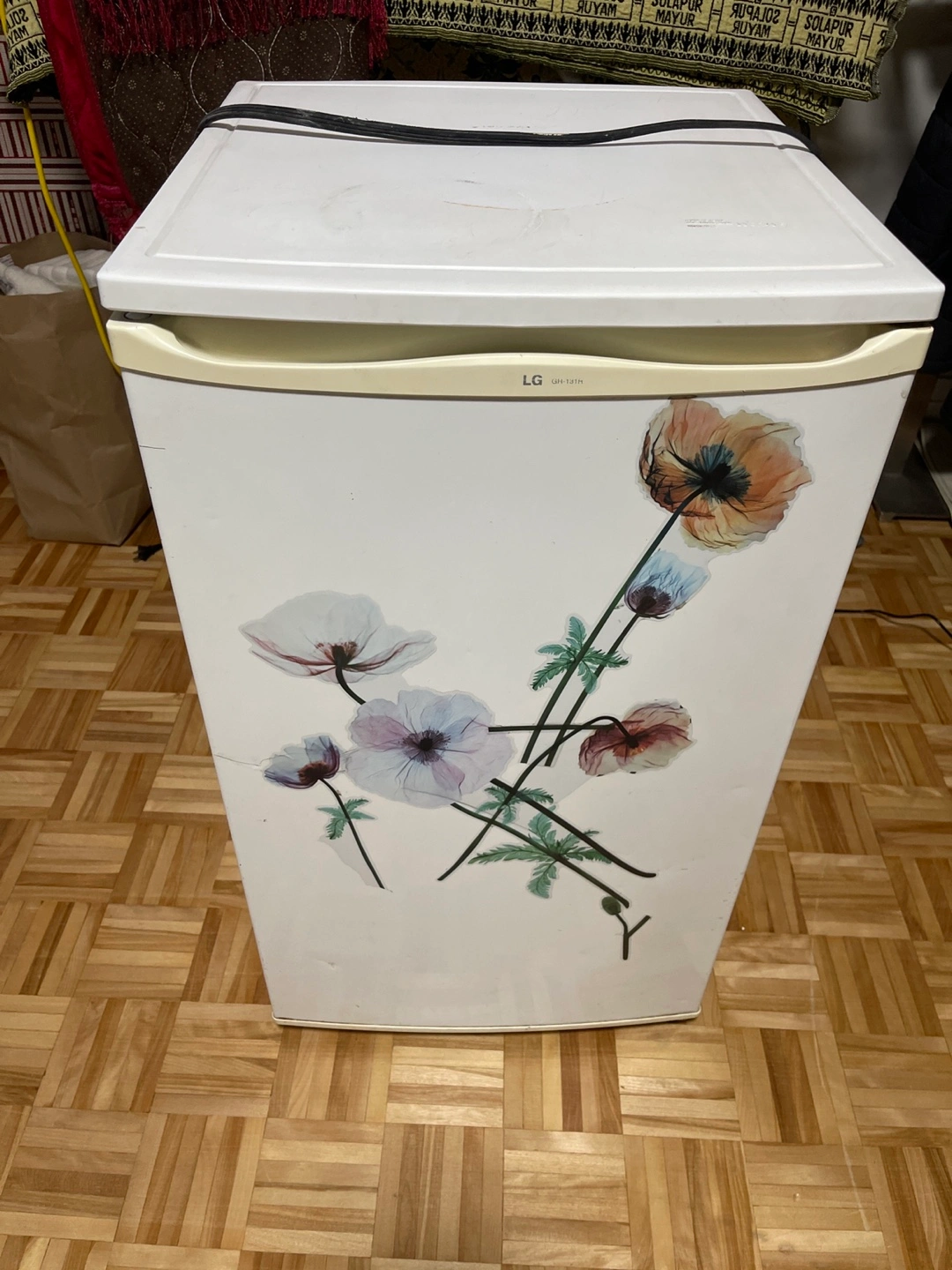 197Selling a white LG mini fridge. It's in good working condition and perfect for a dorm room, office, or small apartment. Has some flower stickers on the front. Inside is clean and ready to use!