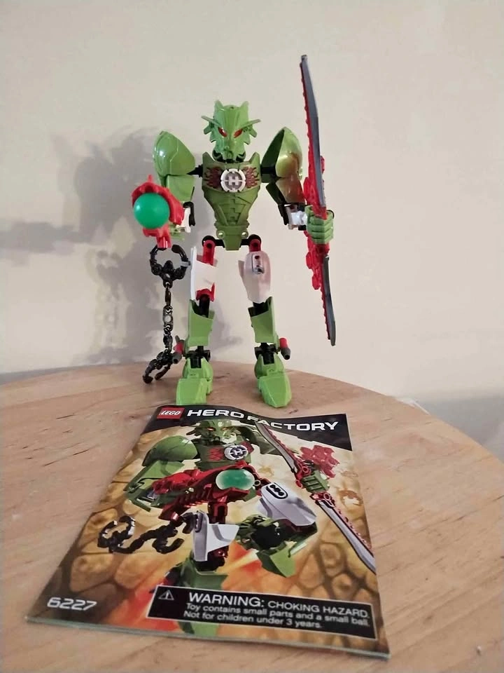 10Set 6227. 99% complete. Missing one small decorative piece on the back of a rocket on his foot. Currently assembled. Instructions Booklet included. Joints are still tight.