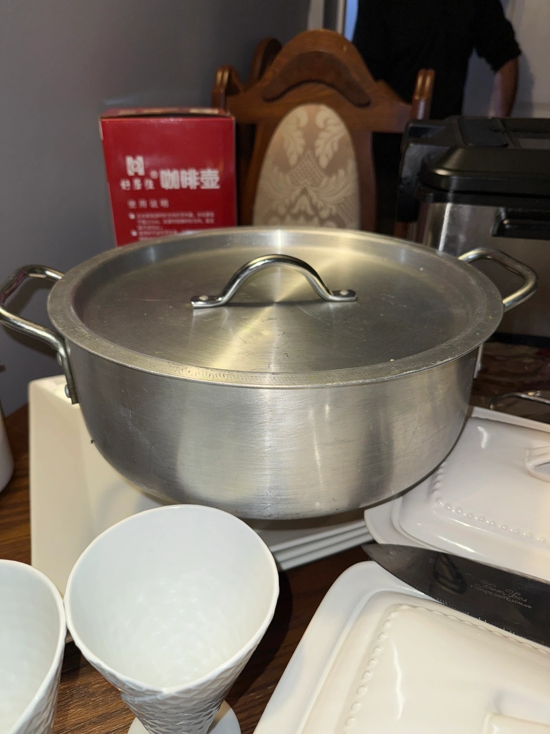 Selling a large silver stock pot, complete with a lid. It's in good condition and ready for your next cooking adventure! Perfect for making soups, stews, or boiling pasta. It's a great addition to any kitchen