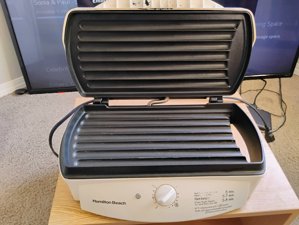Selling a Hamilton Beach electric indoor grill! It's perfect for grilling indoors, no matter the weather. It's in great condition and ready for a new home. Great for cooking burgers, chicken, and more!