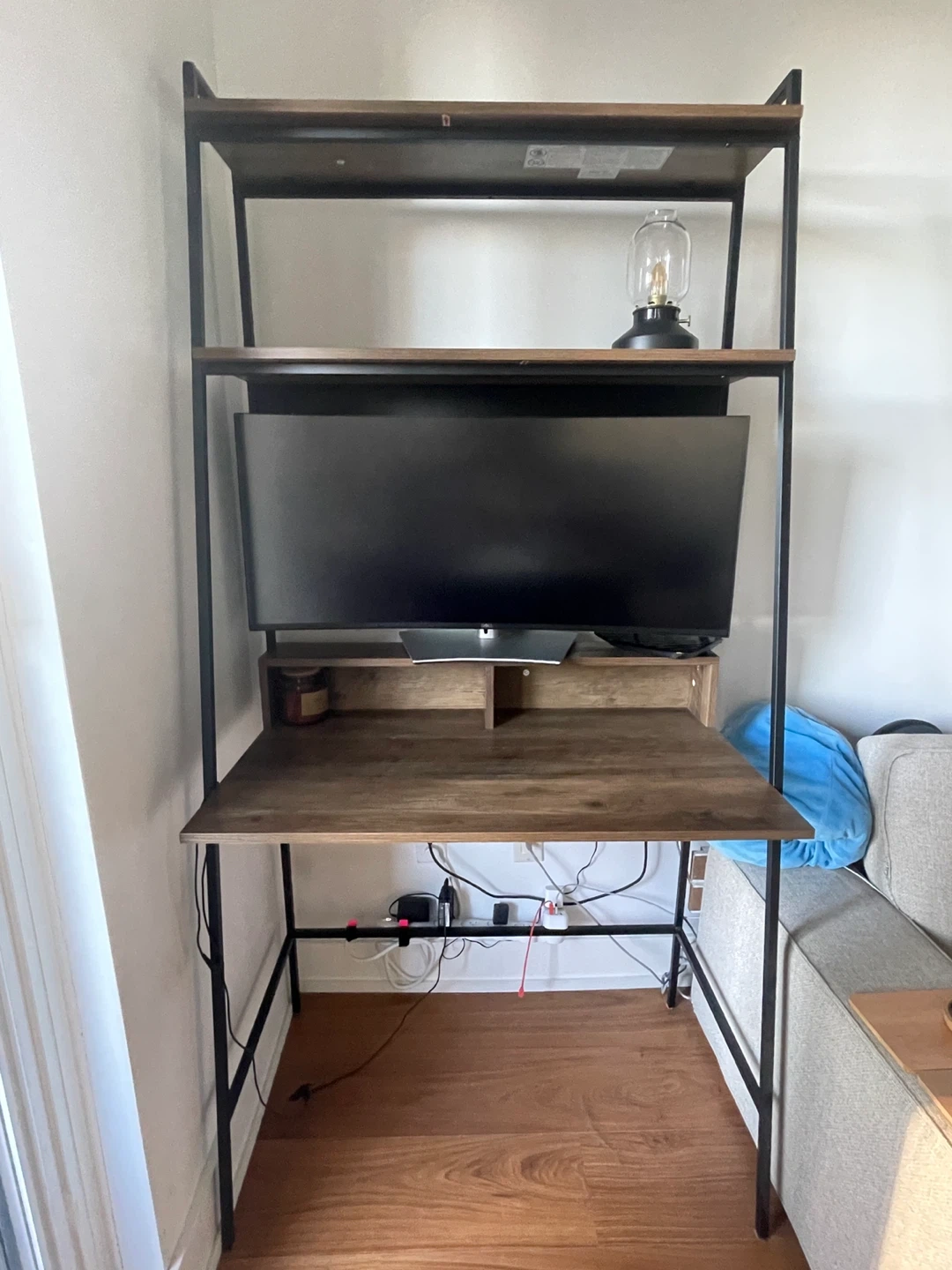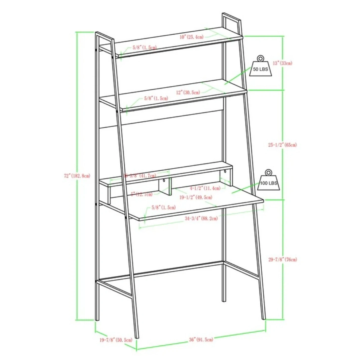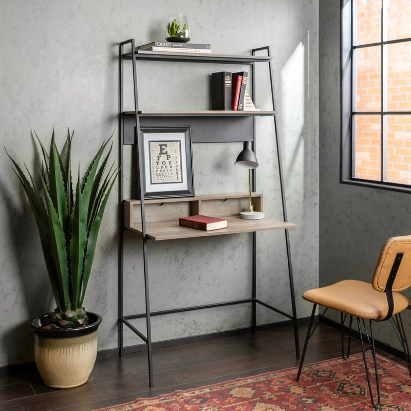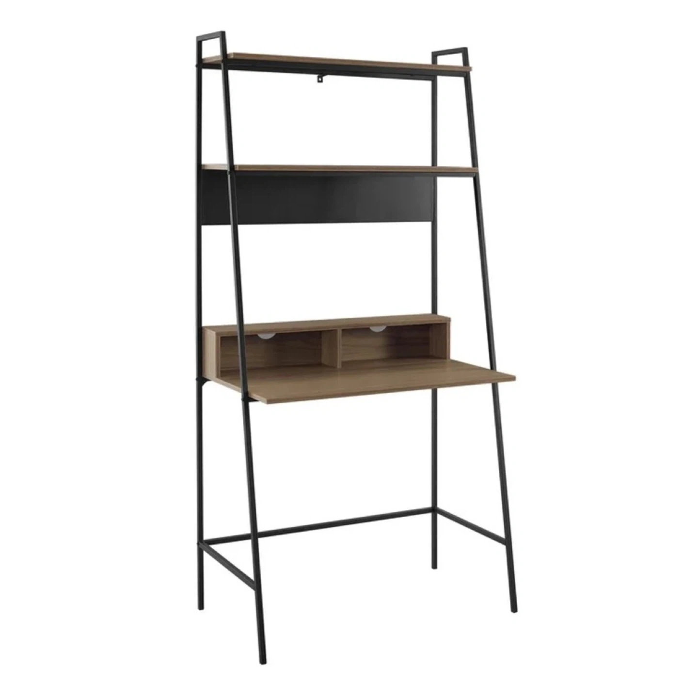 Ladder Desk with Shelves - Wood and Black Metal Frame