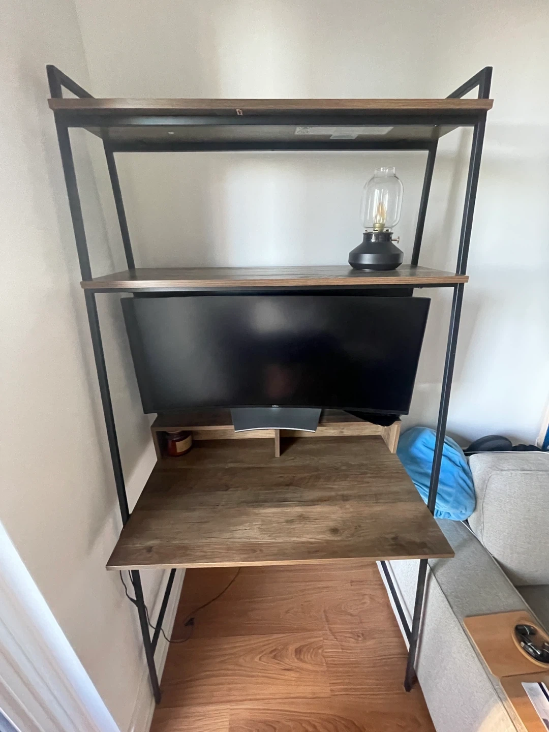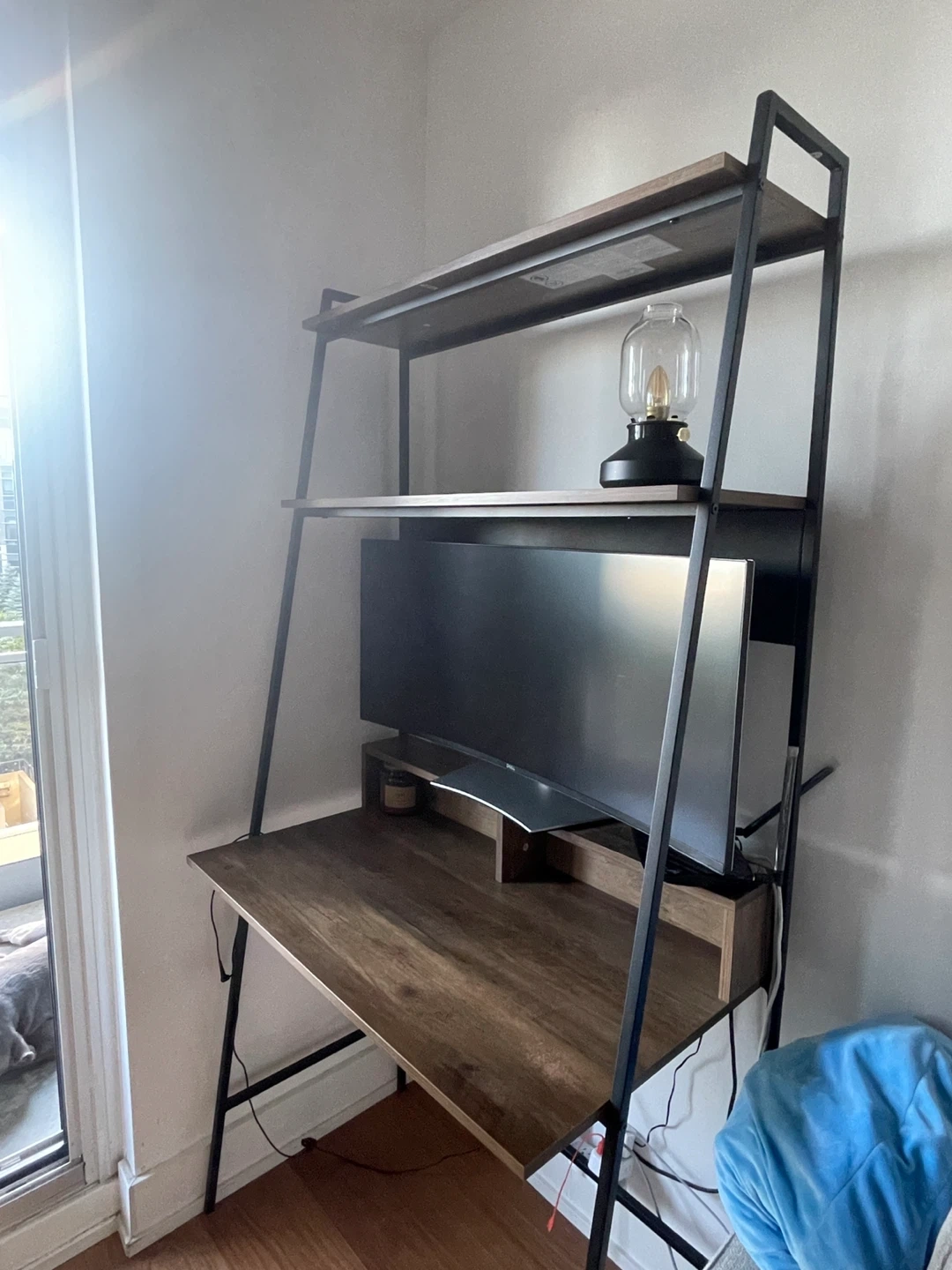 Ladder Desk with Shelves - Wood and Black Metal Frame