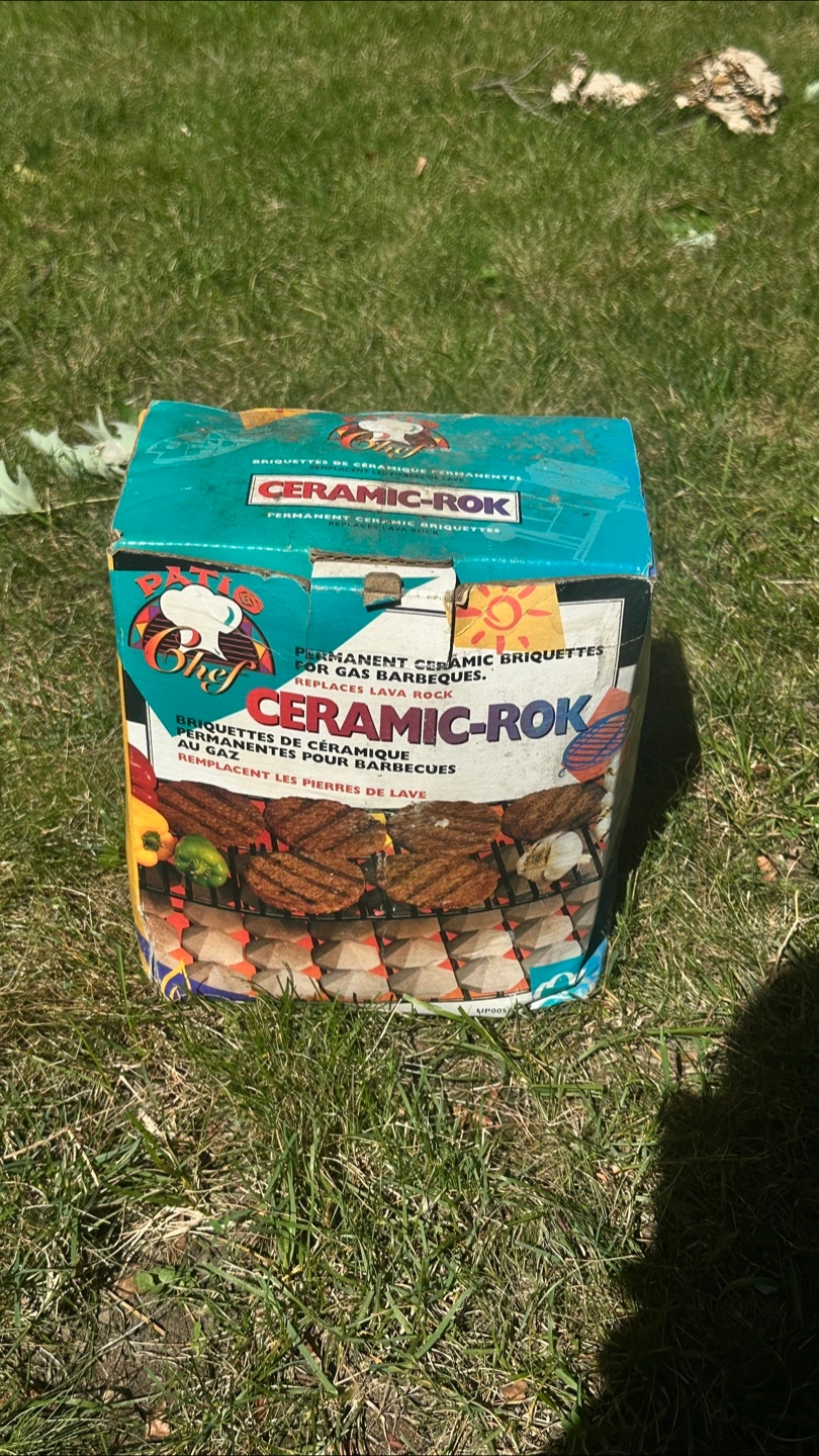 Selling a box of Patio Chef Ceramic-Rok permanent ceramic briquettes for gas barbeques. These replace lava rock and are perfect for getting your grill ready for summer barbecues!