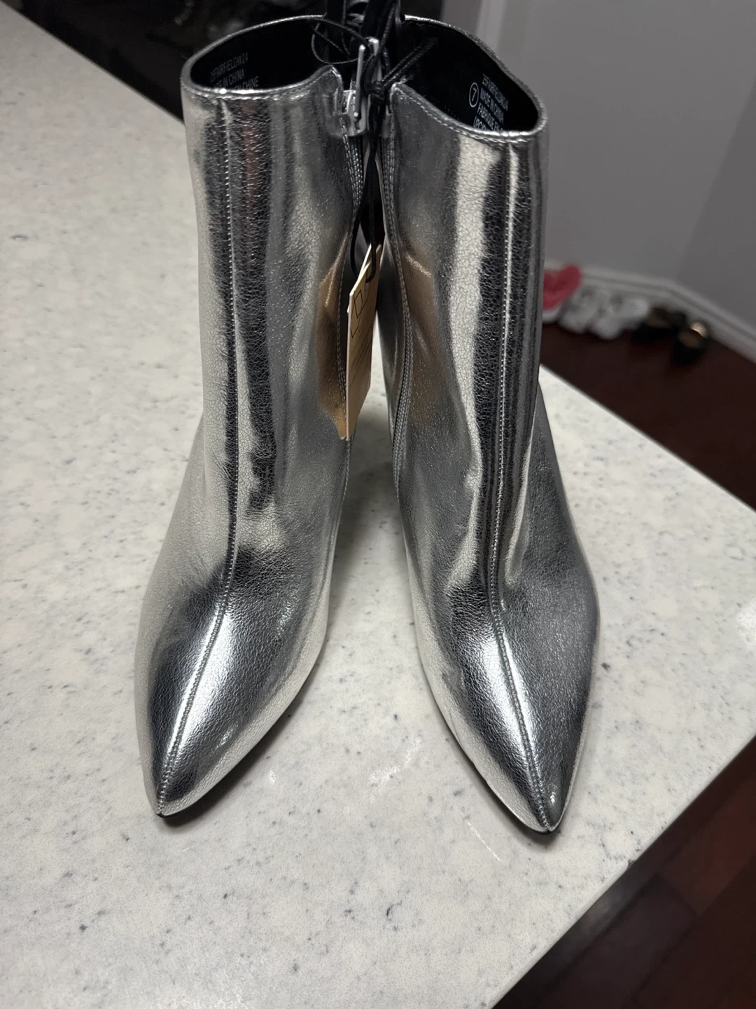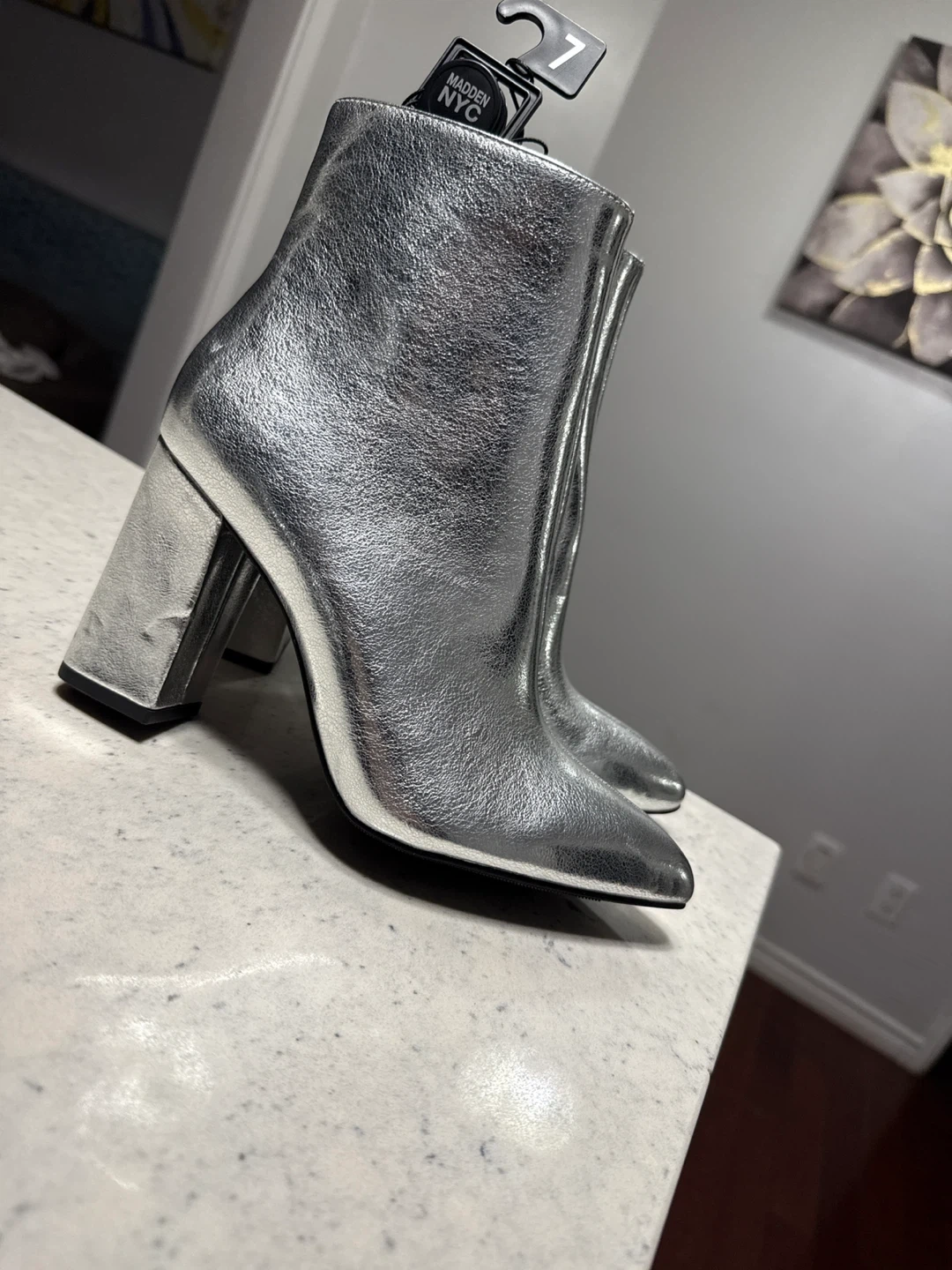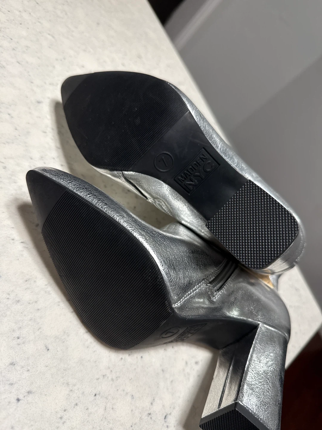 75Selling a pair of Madden NYC ankle boots in silver! They're a size 6, 7, 8, 9. Perfect for adding a bit of shine to your outfit!