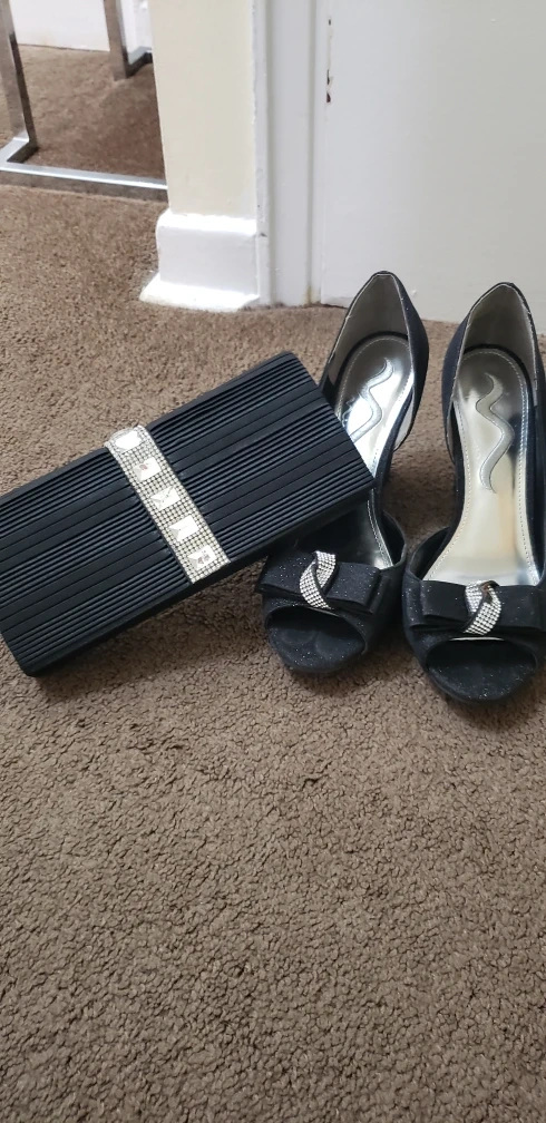 17Selling a lovely Nina heels and clutch set. The heels are a size 8.5 and the set is in black. Perfect for a special occasion!