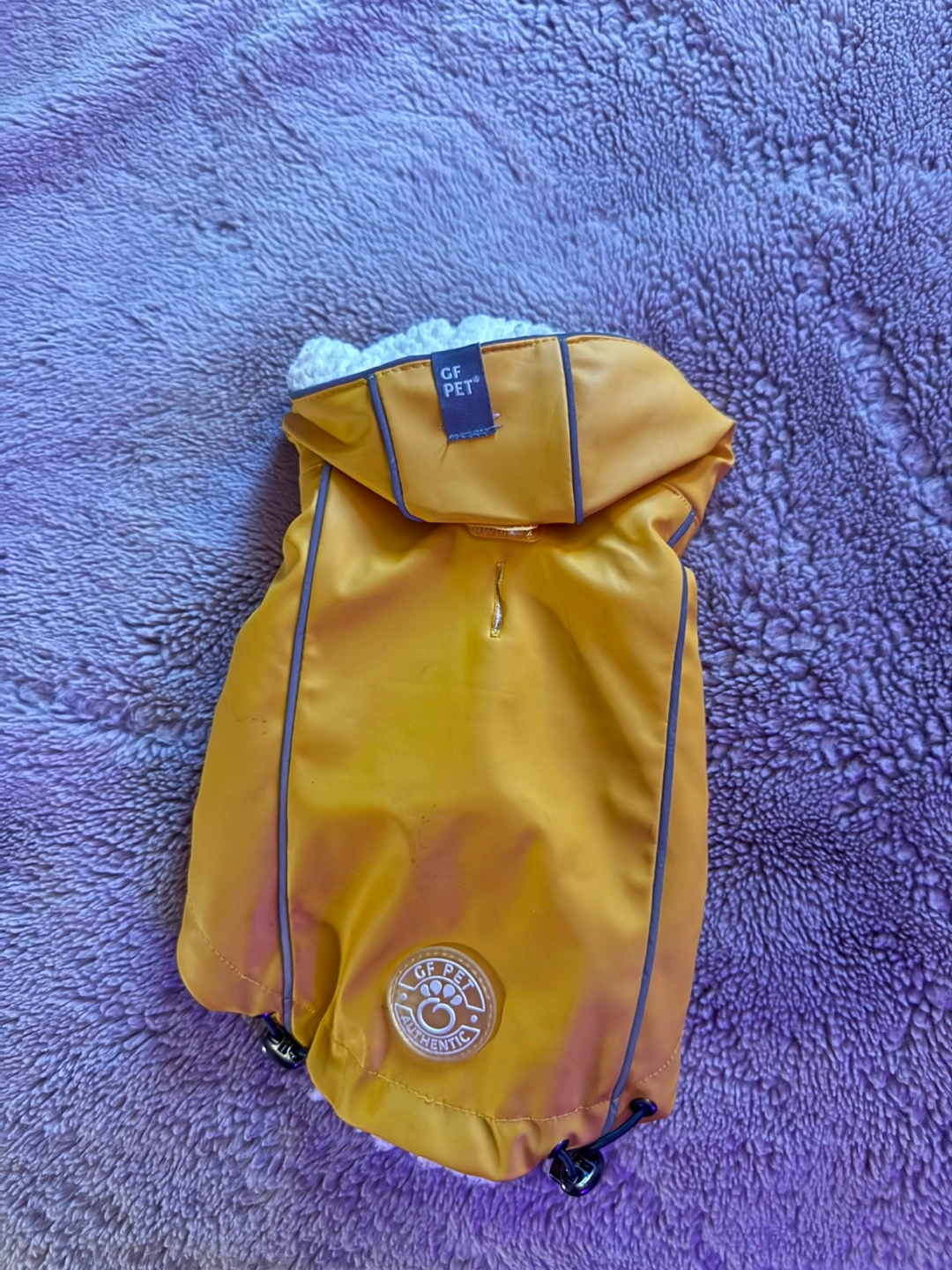 Keep your furry friend warm and stylish with this GF Pet dog jacket! It's a vibrant yellow colour and features a cozy, sherpa-lined interior. Perfect for those chilly Canadian walks!