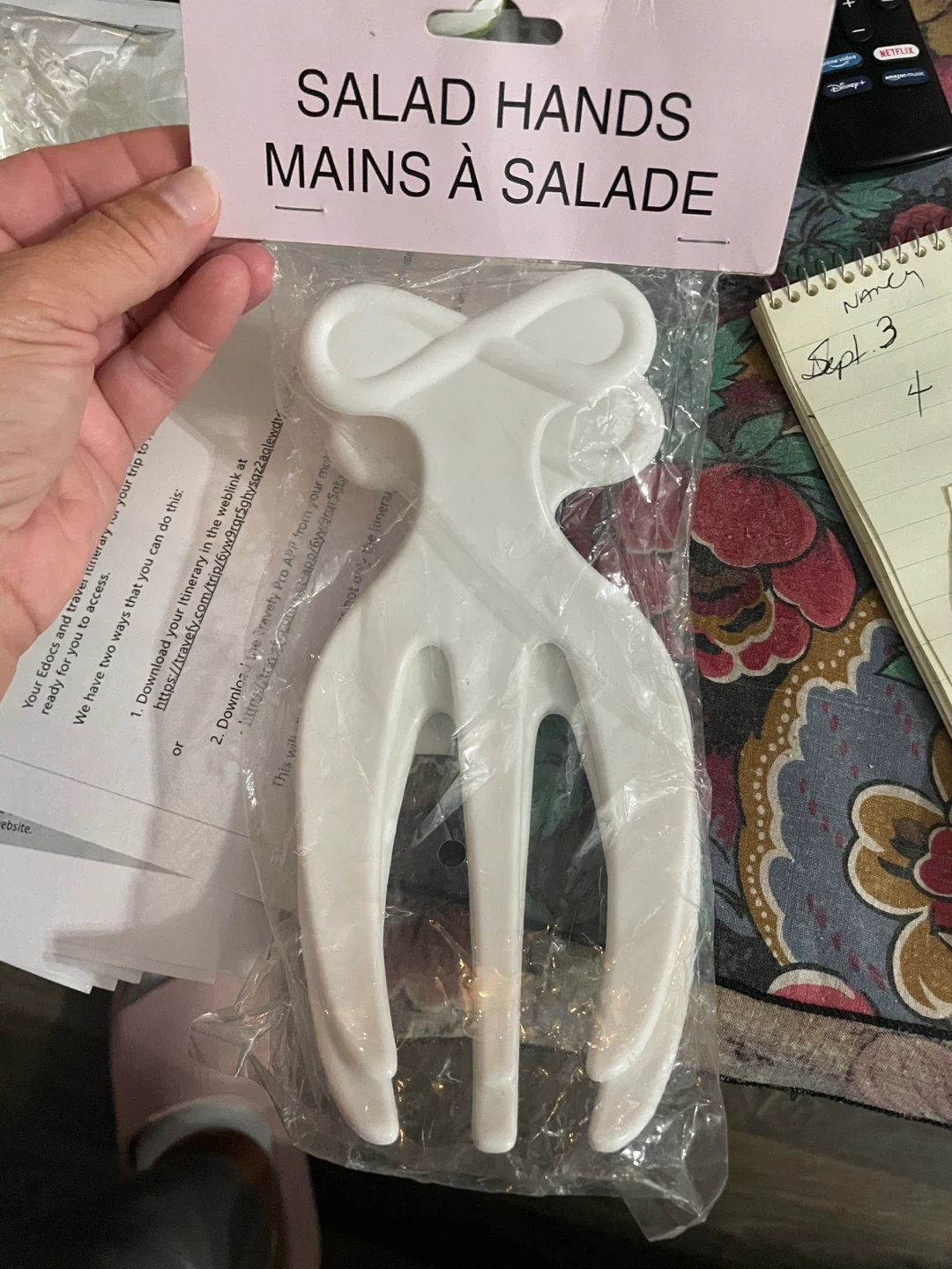 Brand new salad hands still in the original packaging! These are perfect for tossing salads with ease. They also make a great addition to any kitchen utensil collection!